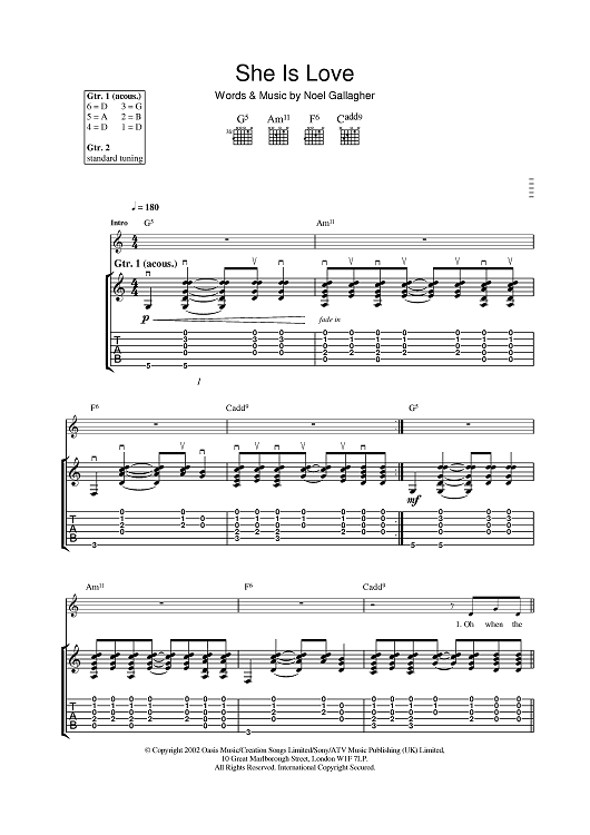 Digital Sheet Music for She Is Love by Oasis scored for Guitar Tab; id:377645