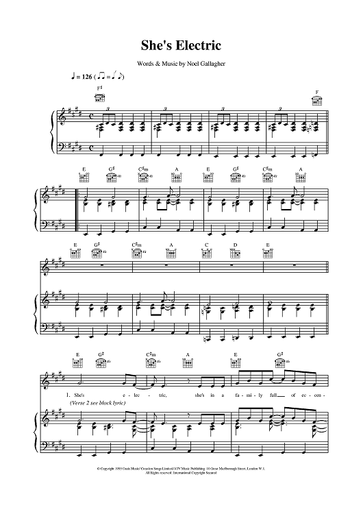 Digital Sheet Music for She's Electric by Oasis scored for Piano/Vocal/Chords; id:376045