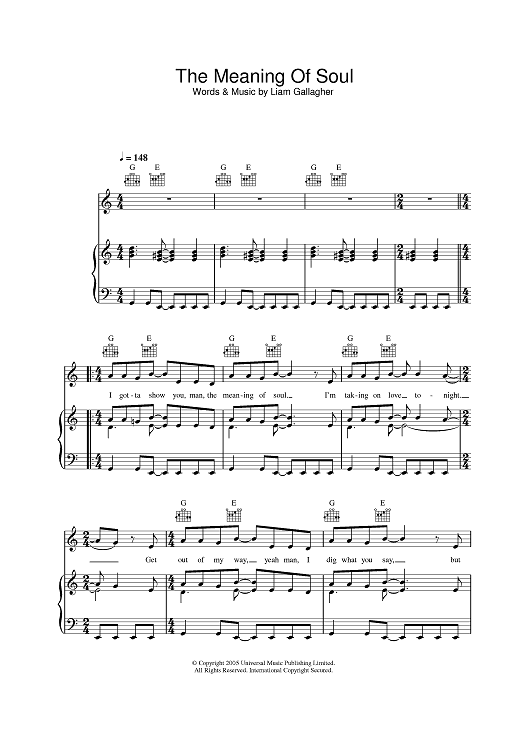 Digital Sheet Music for The Meaning Of Soul by Oasis, Liam Gallagher scored for Piano/Vocal/Chords; id:387467