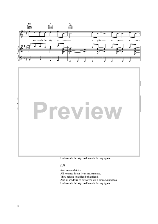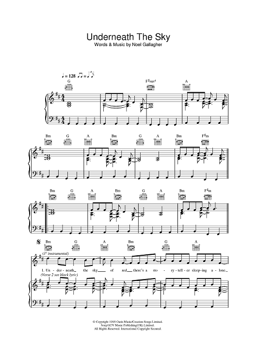 Digital Sheet Music for Underneath The Sky by Noel Gallagher, Oasis scored for Piano/Vocal/Chords; id:385850