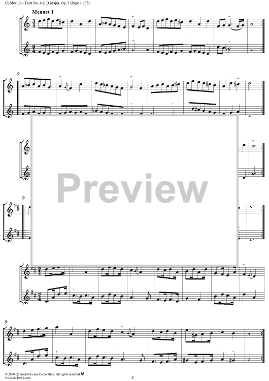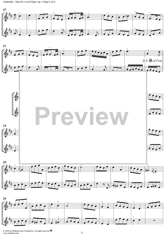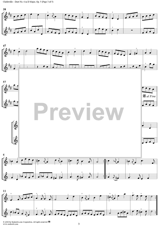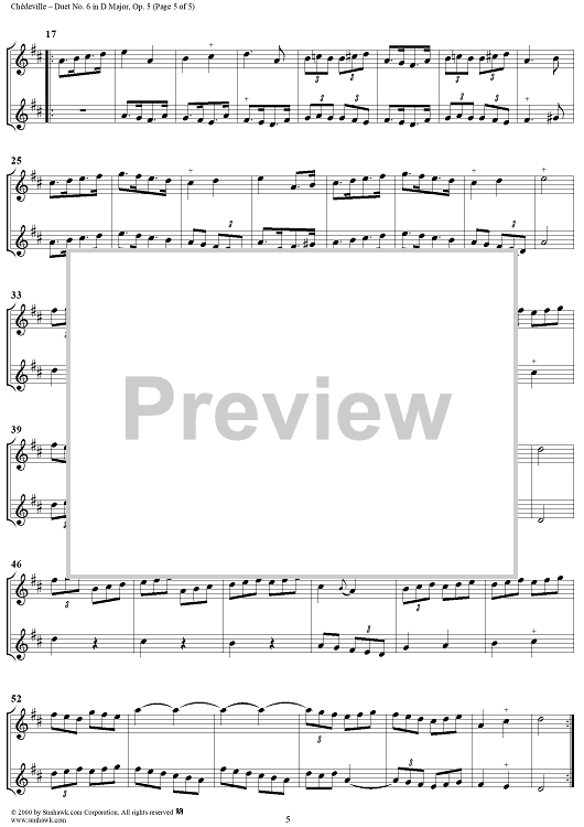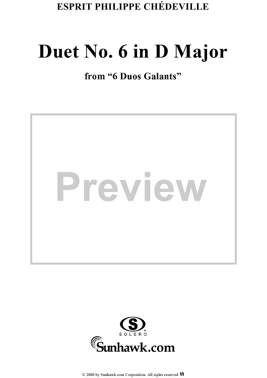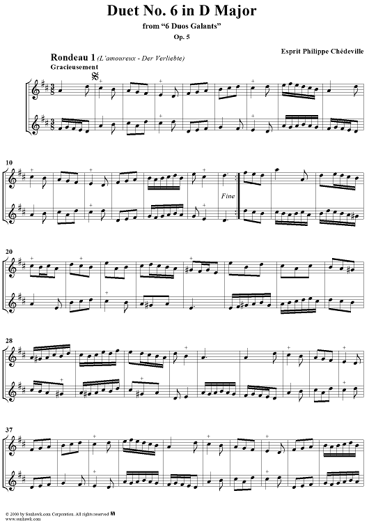 Digital Sheet Music for Duo Galant in D major, Op. 5, No. 6 by Esprit Philippe Chédeville scored for Flute Duet or Oboe Duet; id:235797