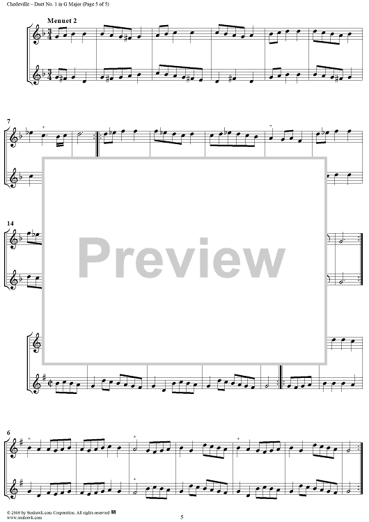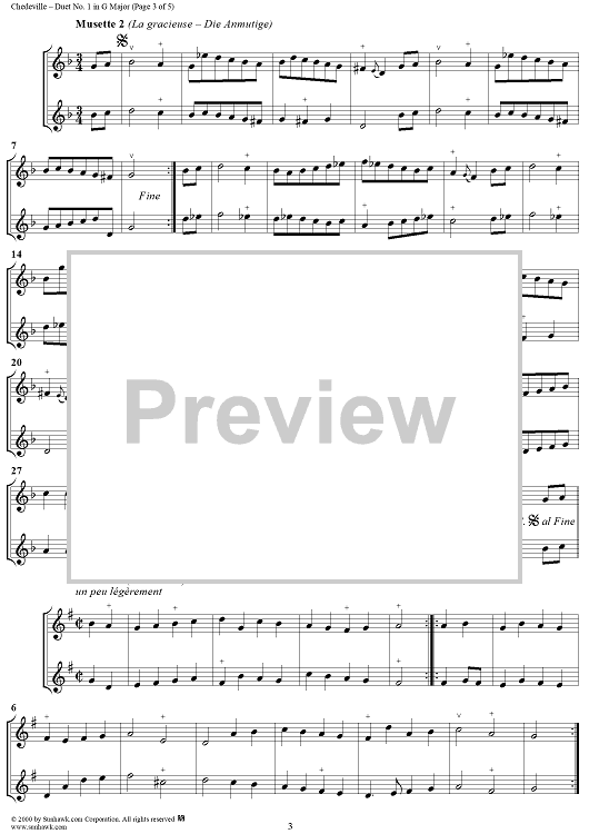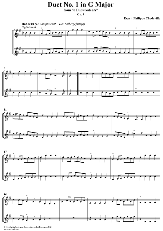 Digital Sheet Music for Duo Galant in G major, Op. 5, No. 1 by Esprit Philippe Chédeville scored for Flute Duet or Oboe Duet; id:235624