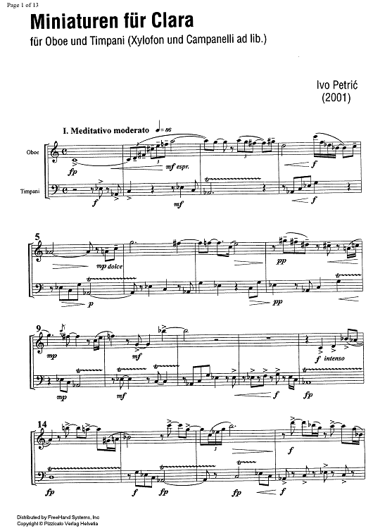 Digital Sheet Music for Minaturen für Clara by , Ivo Petric scored for Oboe/Timpani; id:343394