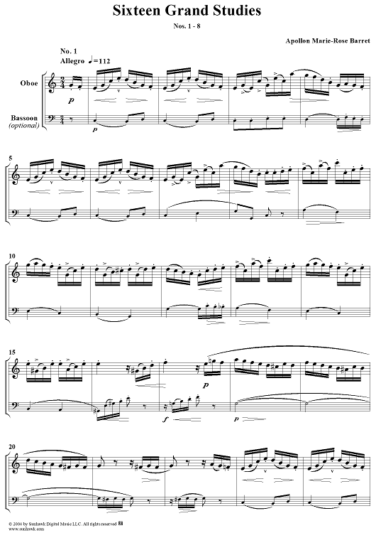 Digital Sheet Music for Study Nos. 1-8 by Apollon Marie-Rose Barret scored for Oboe/Opt. Bassoon; id:303359