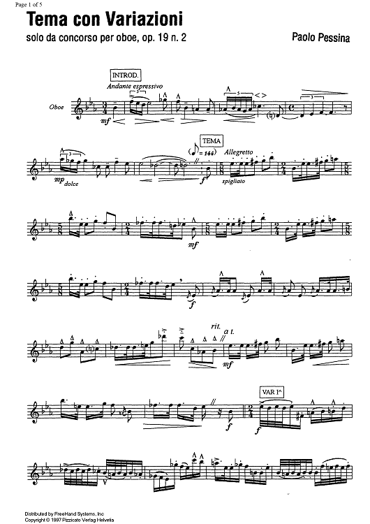 Digital Sheet Music for Tema con Variazioni Op.19 No. 2 by , Paolo Pessina scored for Oboe; id:334961