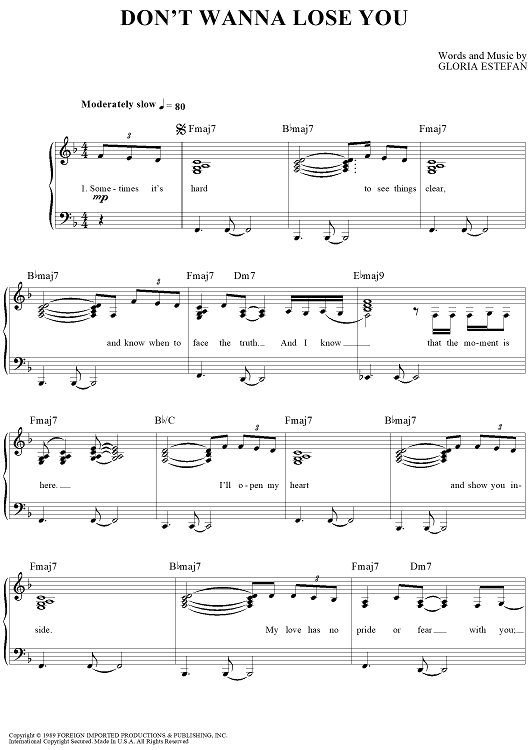 "Don't Wanna Lose You" Sheet Music by Gloria Estefan