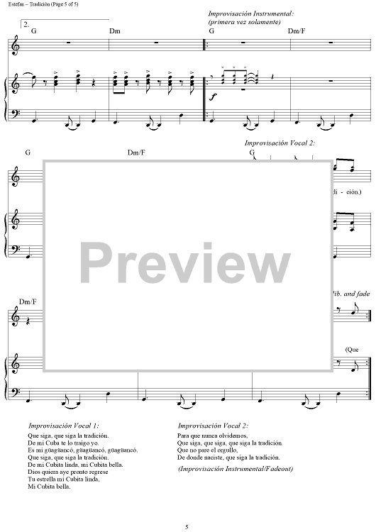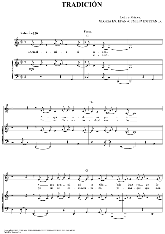 Digital Sheet Music for Tradición by Gloria Estefan, Emilio Estefan Jr. scored for Piano/Vocal/Chords; id:441299