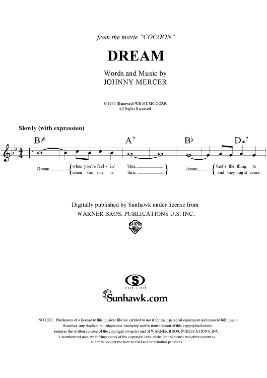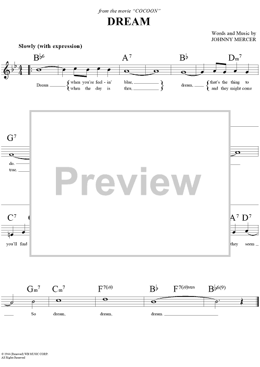 Digital Sheet Music for Dream by Frank Sinatra, Johnny Mercer, Jimmy Dorsey, The Pied Pipers, Michael Buble scored for Lead Sheet; id:120415