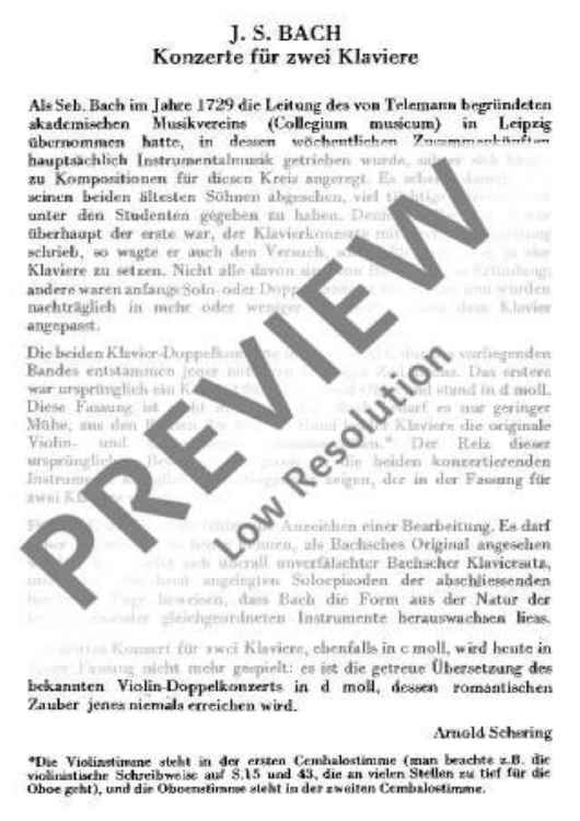 "Concerto C minor - Full Score" Sheet Music by Johann Sebastian Bach