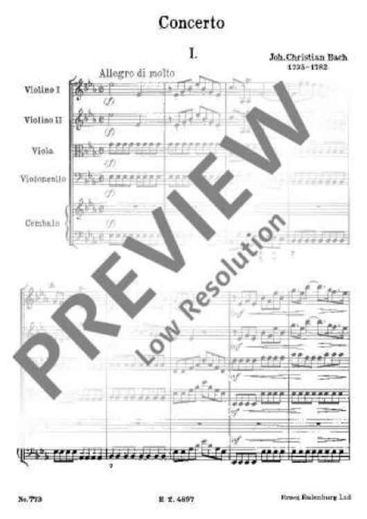 "Concerto Eb Major - Full Score" Sheet Music by Johann Christian Bach