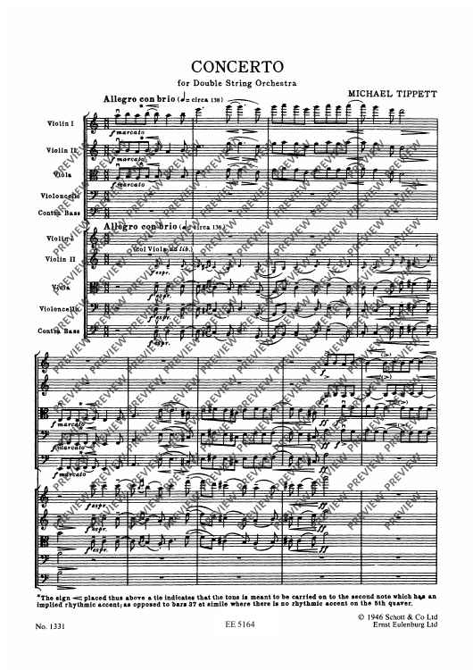 "Concerto for Double String Orchestra - Full Score" Sheet Music by Sir Michael Tippett