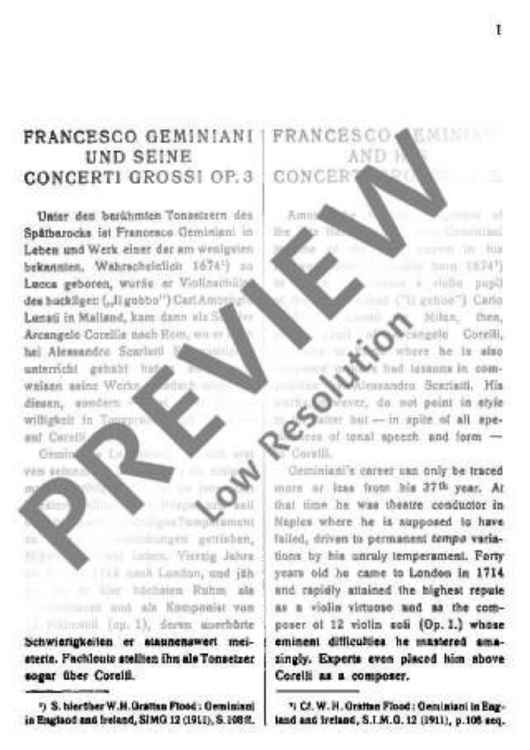 "Concerto grosso E minor - Full Score" Sheet Music by Francesco Geminiani