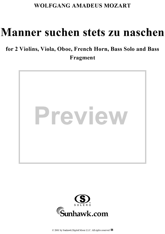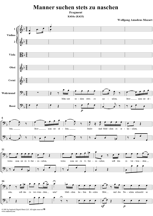 Digital Sheet Music for Aria for Bass and Orchestra: "Männer suchen stets zu naschen", K. 433 (K. 416c) - Full Score by Wolfgang Amadeus Mozart scored for Bass Vocal/Orchestra; id:242029