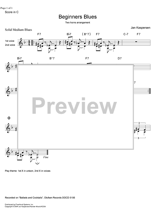 Digital Sheet Music for Beginners Blues by , Jan Kaspersen scored for Score; id:352586