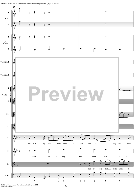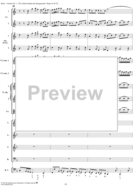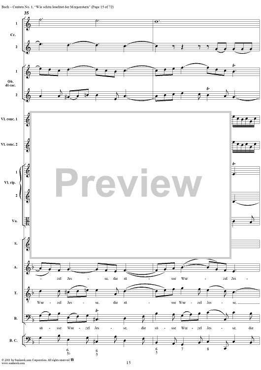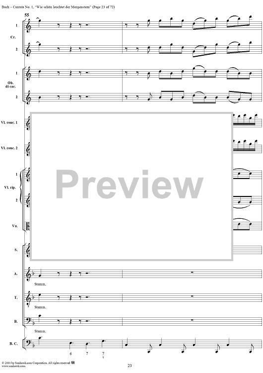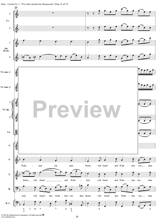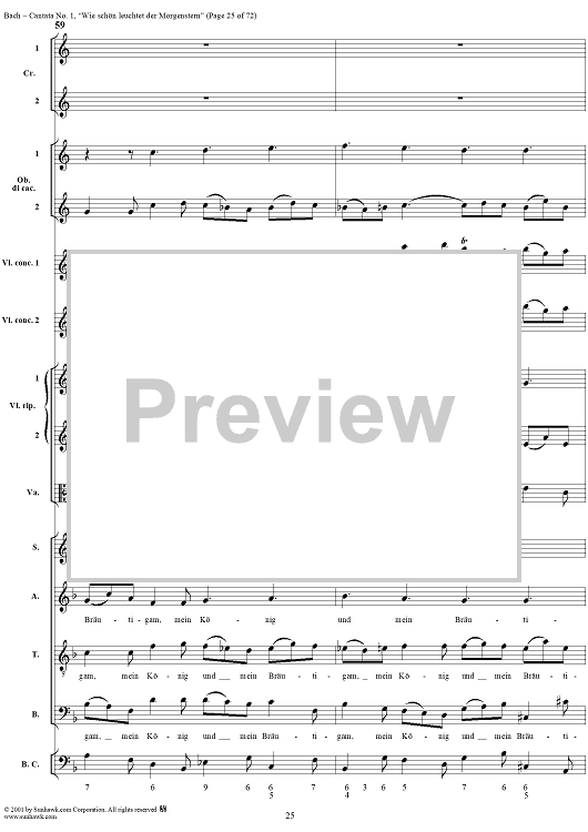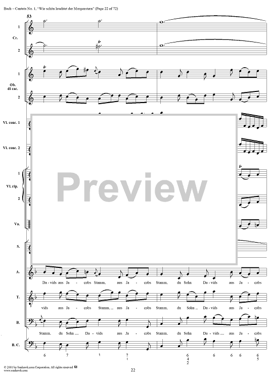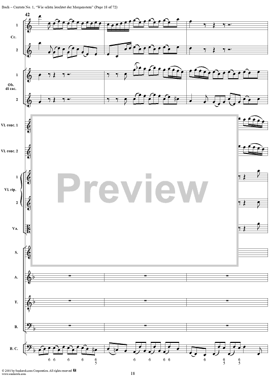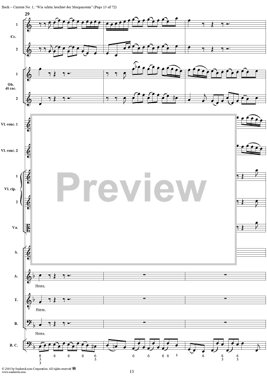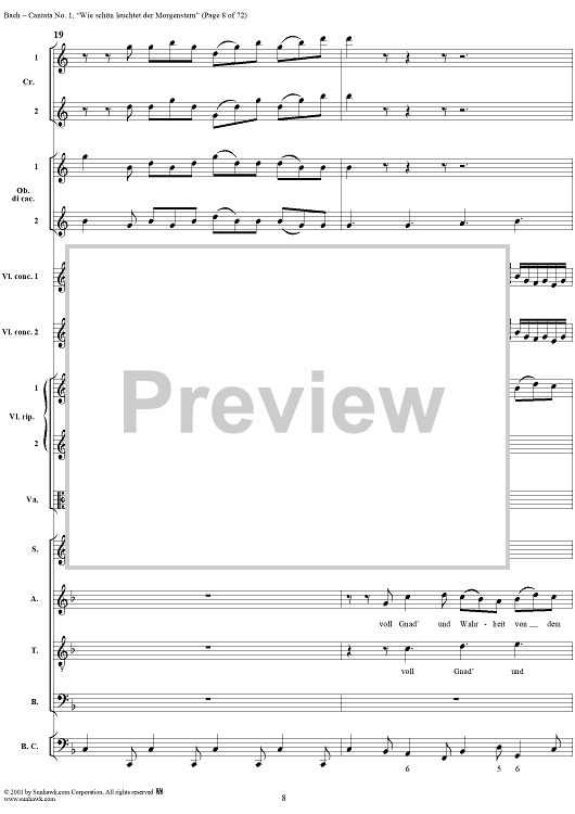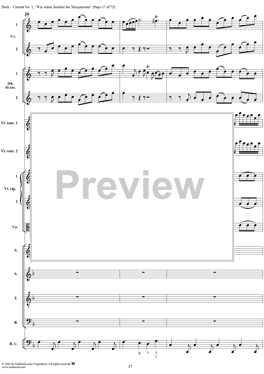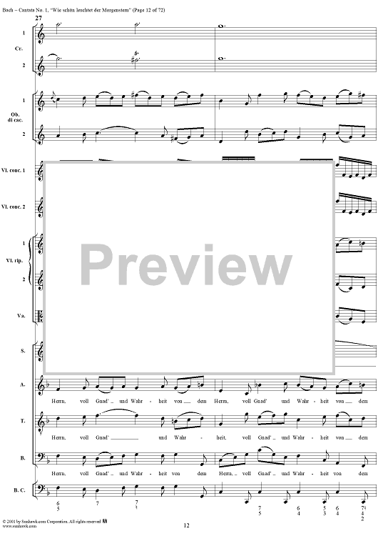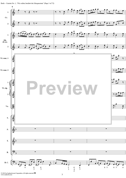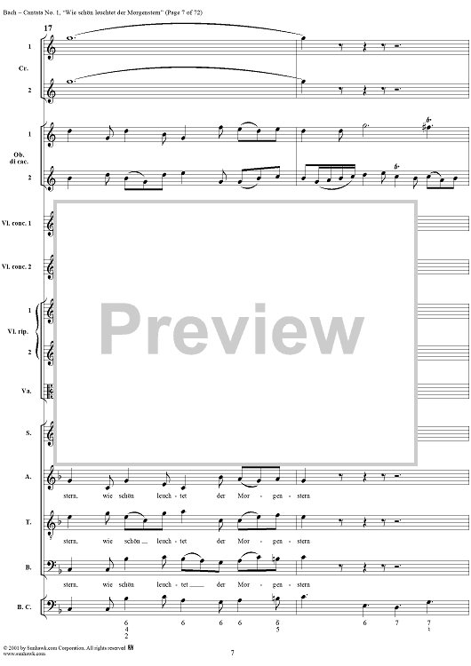 Digital Sheet Music for Cantata No. 1: "Wie schön leuchtet der Morgenstern," BWV1 by Johann Sebastian Bach scored for Full Score; id:262837
