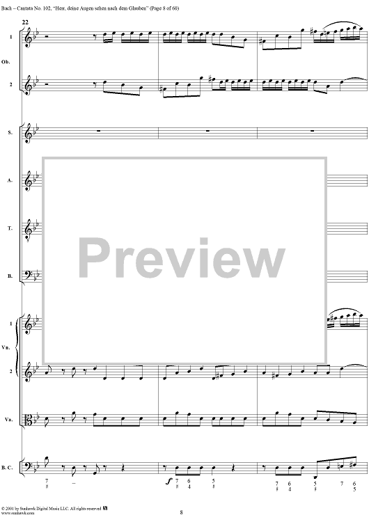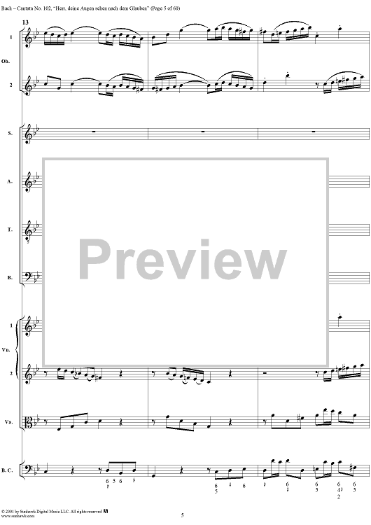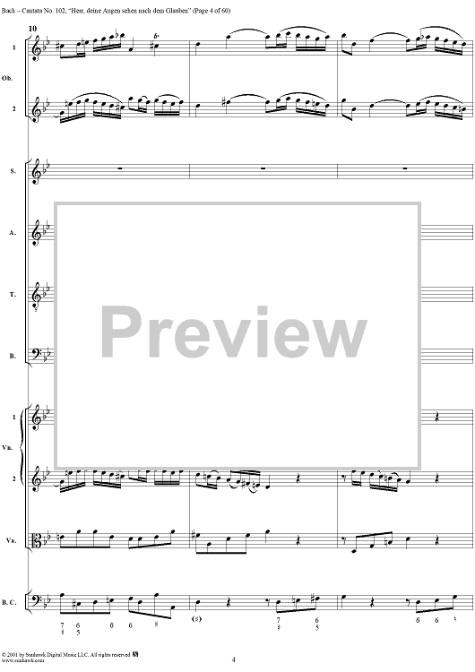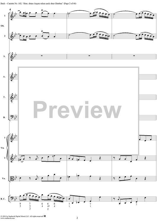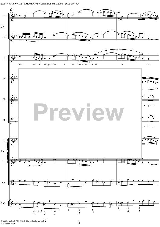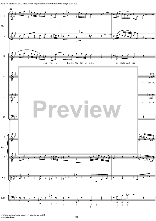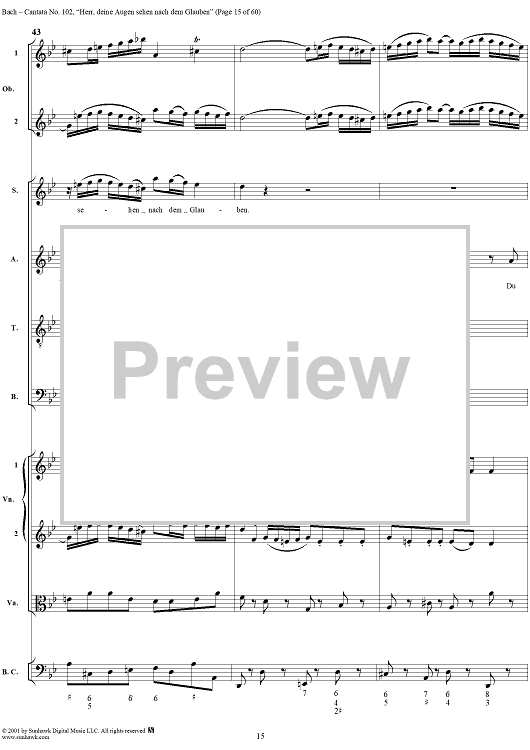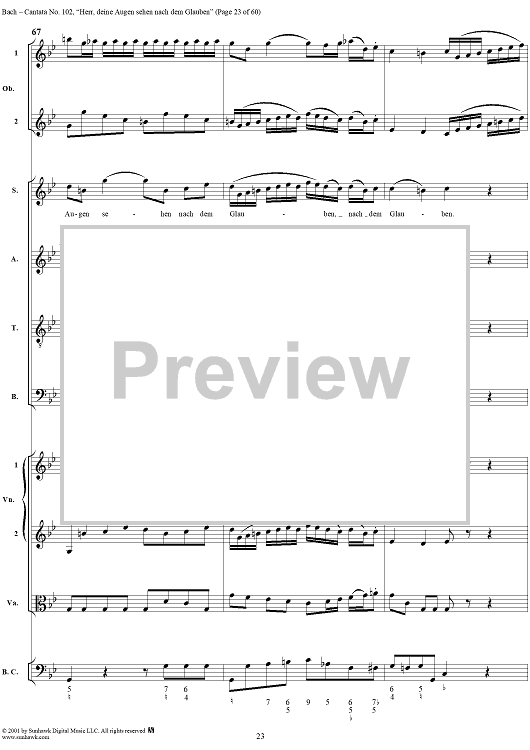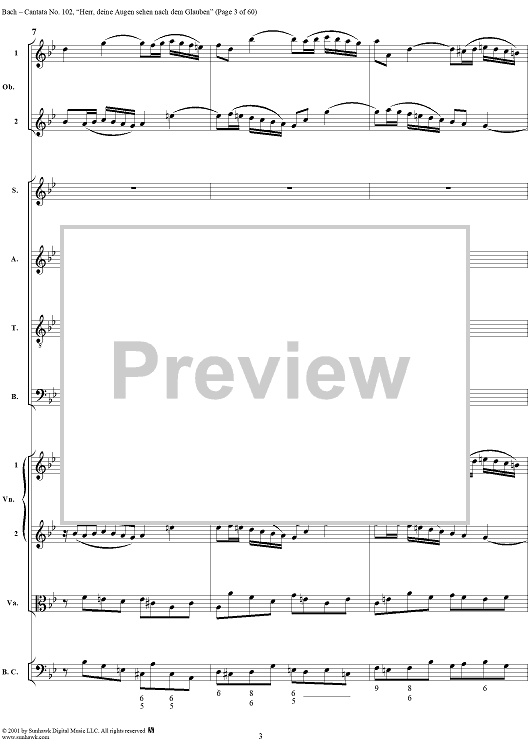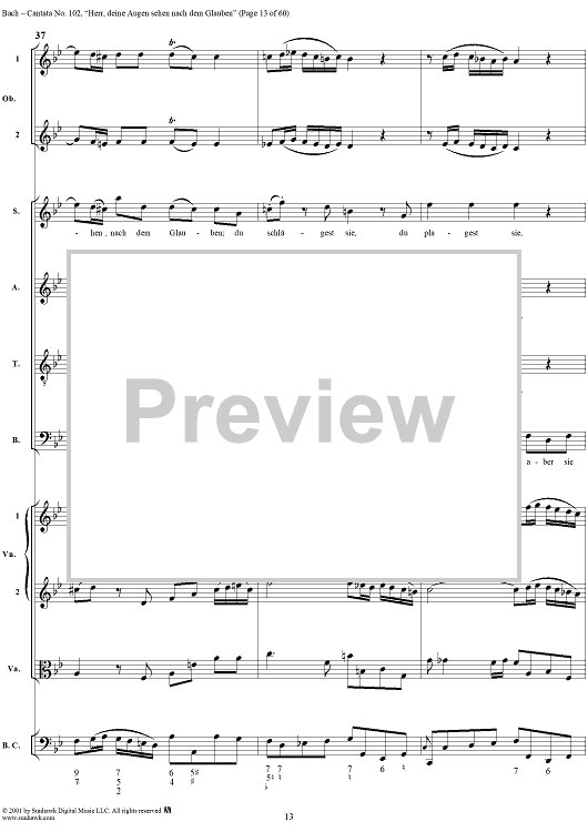 Digital Sheet Music for Cantata No. 102: Herr, deine Augen sehen nach dem Glauben, BWV102 by Johann Sebastian Bach scored for Full Score; id:263350