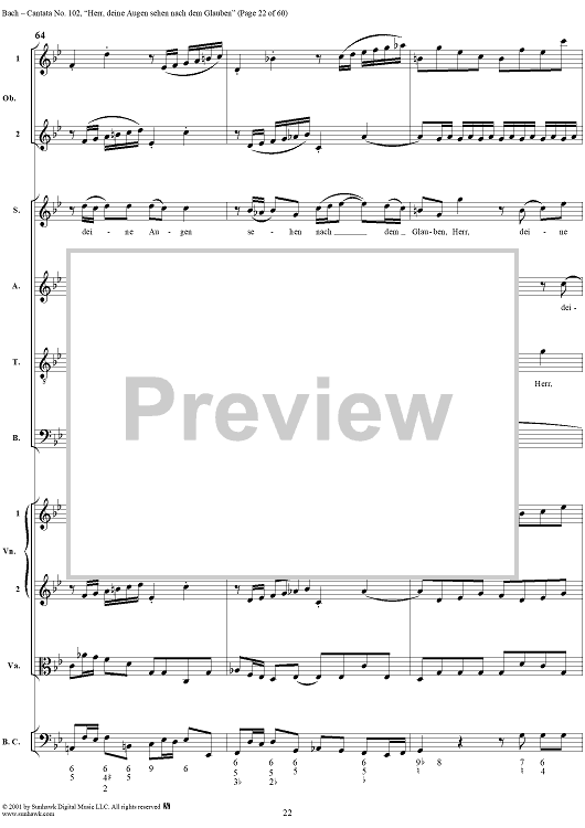 "Cantata No. 102: Herr, deine Augen sehen nach dem Glauben, BWV102" Sheet Music by Johann Sebastian Bach