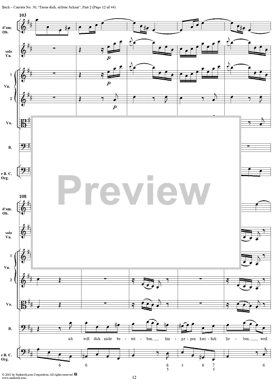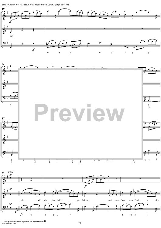 "Cantata No. 30: "Freue dich, erlöste Schar" Part 2" Sheet Music by Johann Sebastian Bach