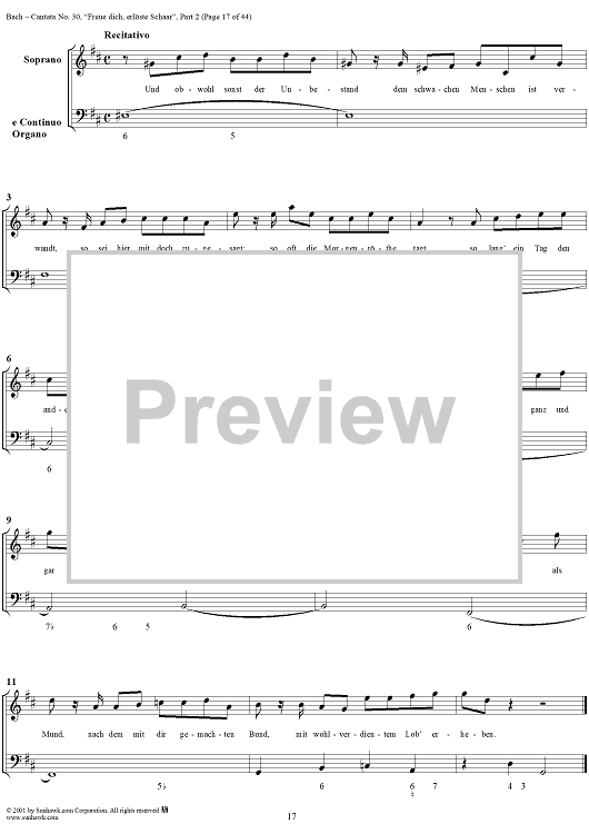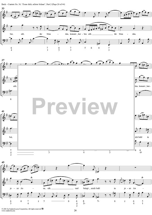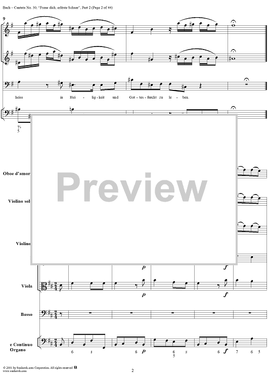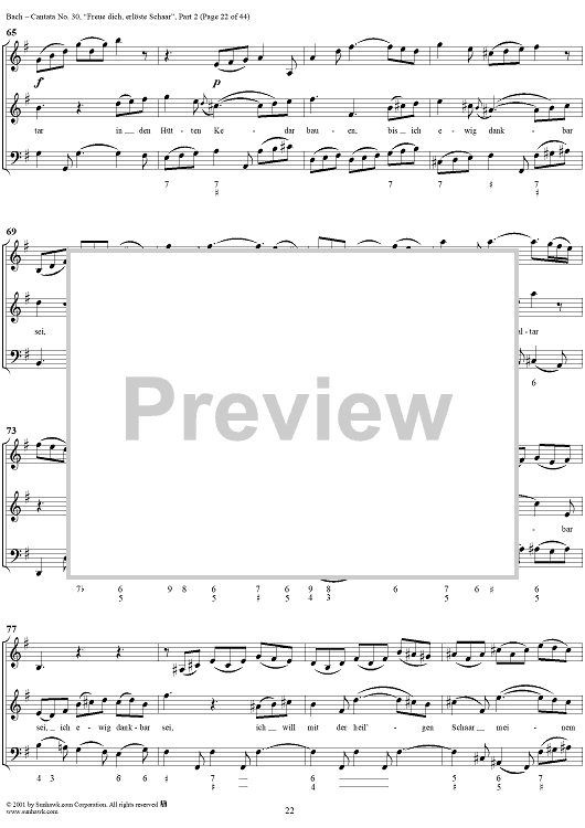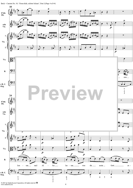 Digital Sheet Music for Cantata No. 30: "Freue dich, erlöste Schar" Part 2 by Johann Sebastian Bach scored for Full Score; id:276648