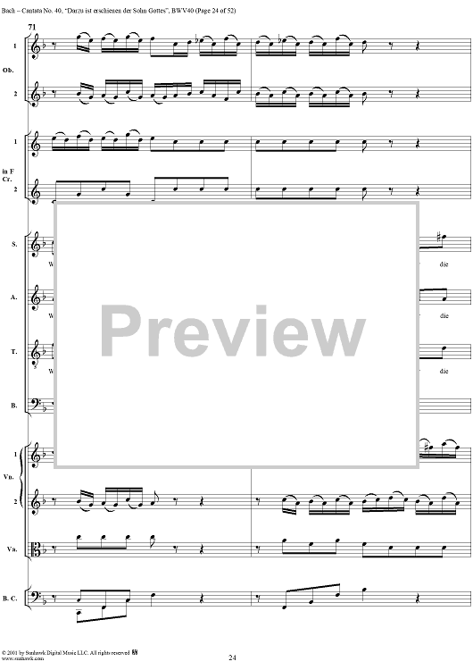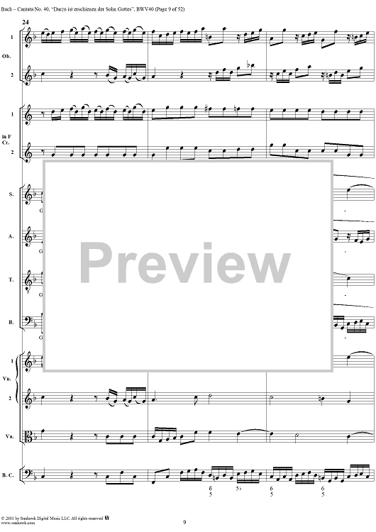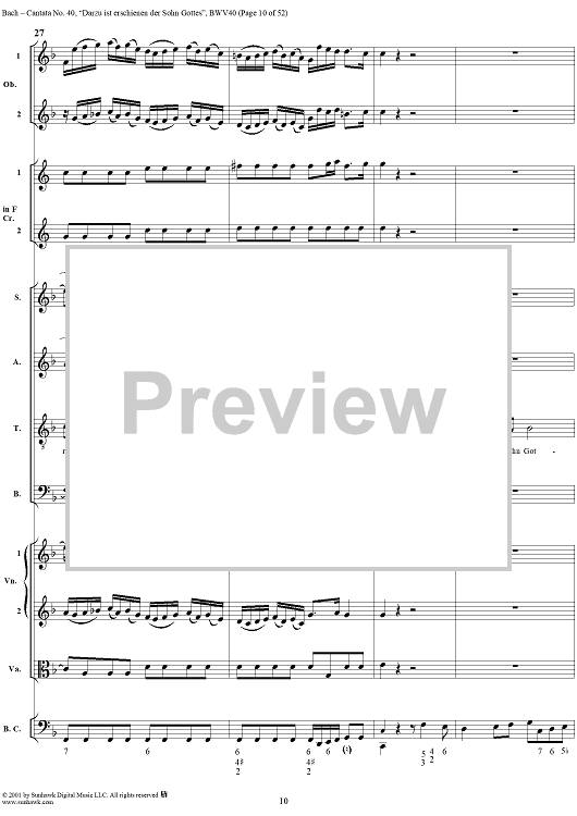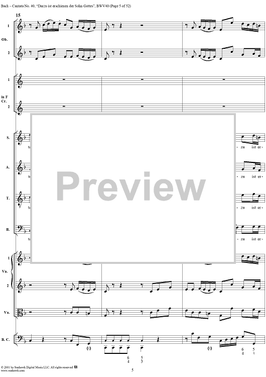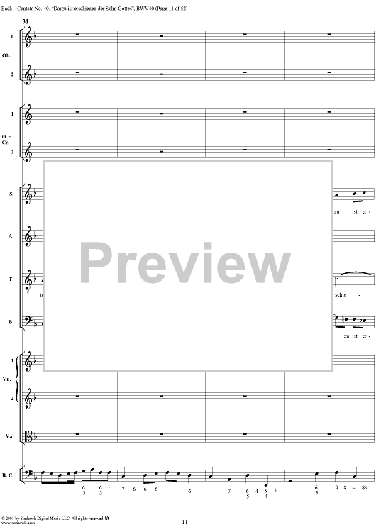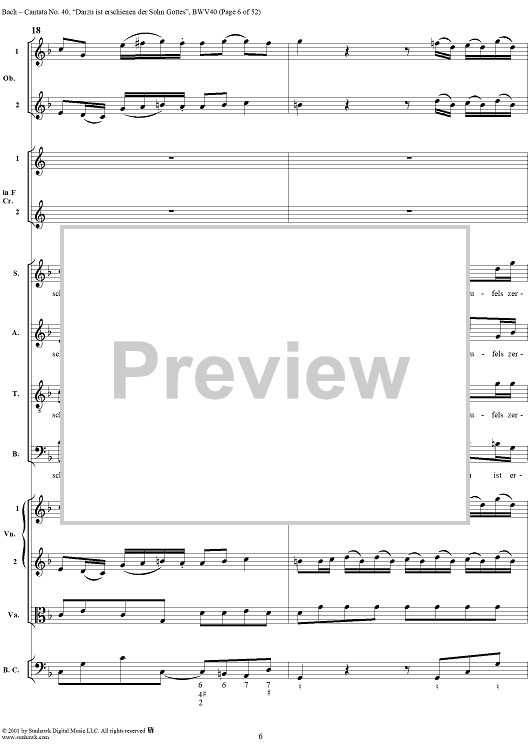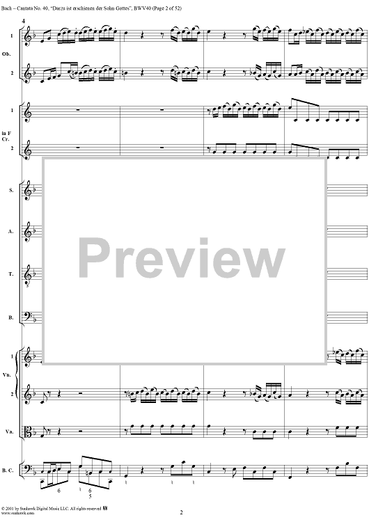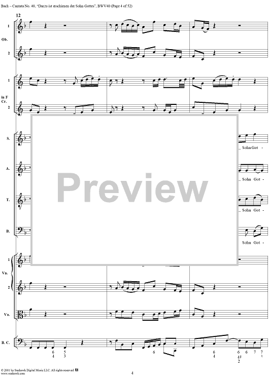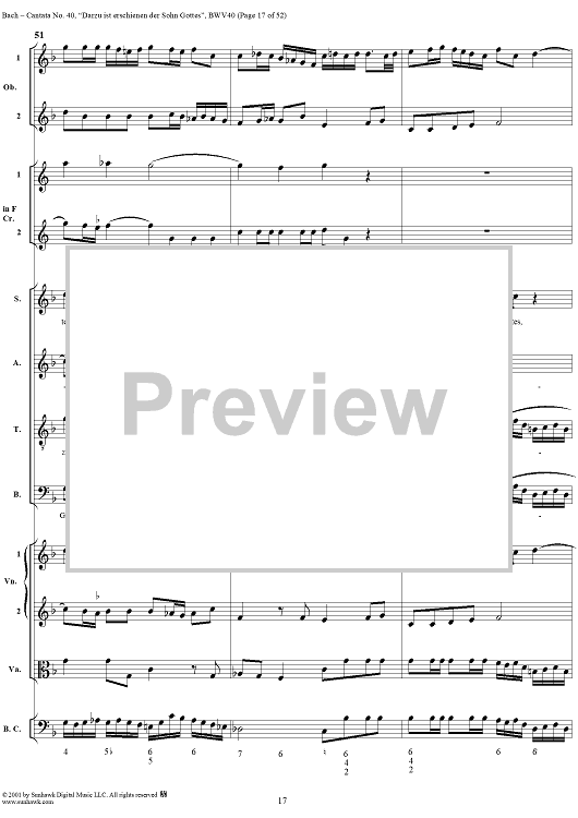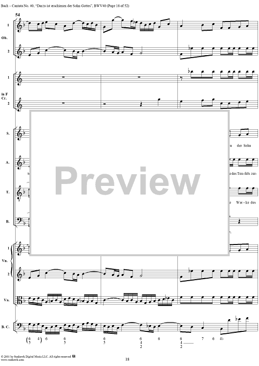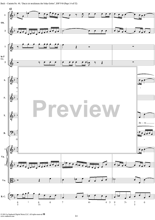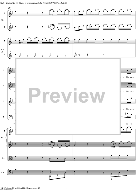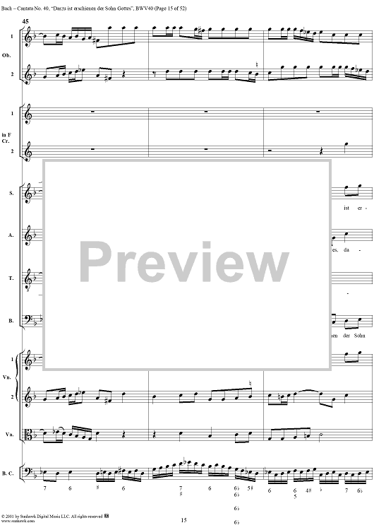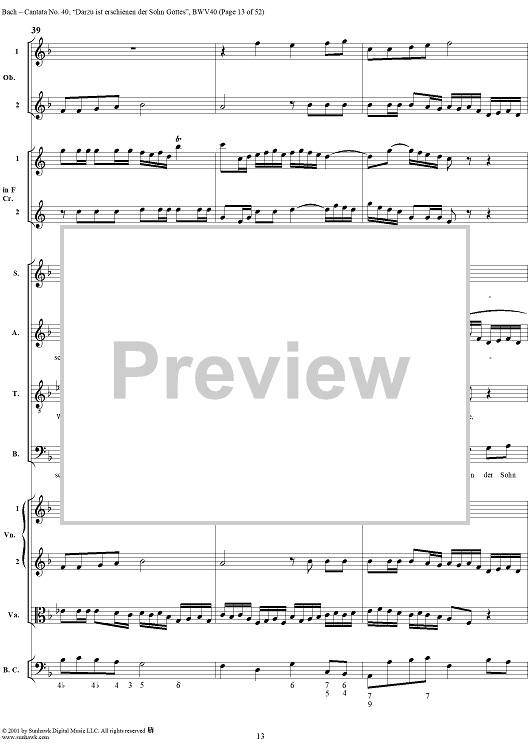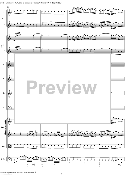 Digital Sheet Music for Cantata No. 40: Darzu ist erschienen der Sohn Gottes, BWV40 by Johann Sebastian Bach scored for Full Score; id:262832