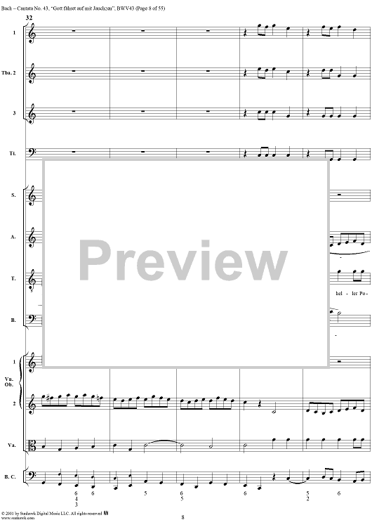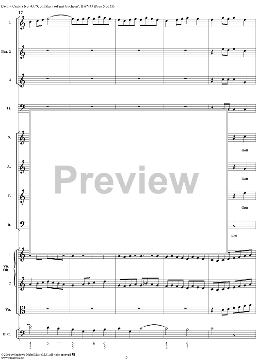 Digital Sheet Music for Cantata No. 43: Gott fähret auf mit Jauchzen, BWV43 by Johann Sebastian Bach scored for Full Score; id:263037