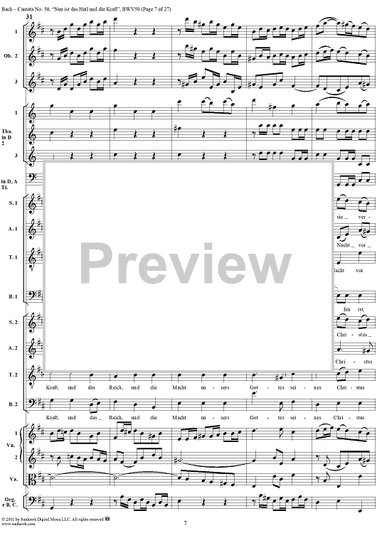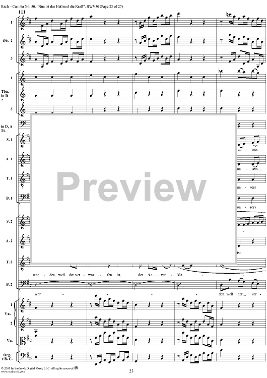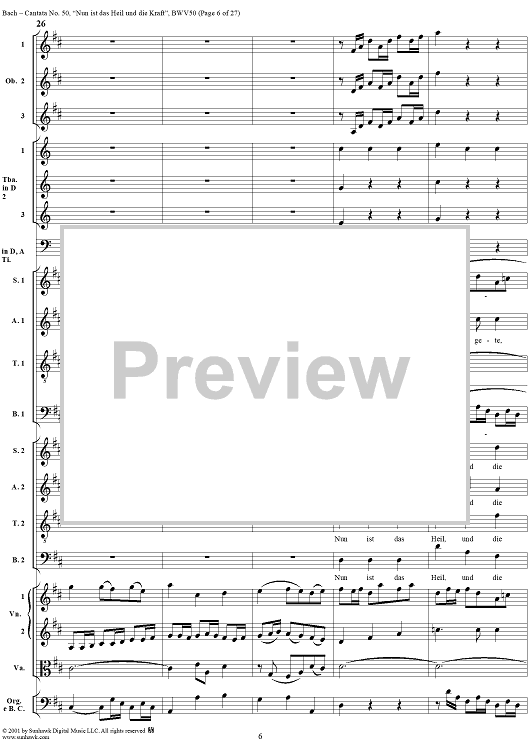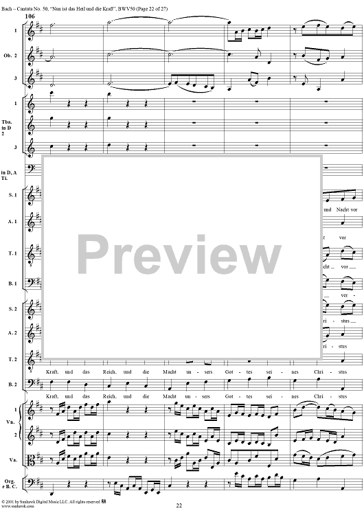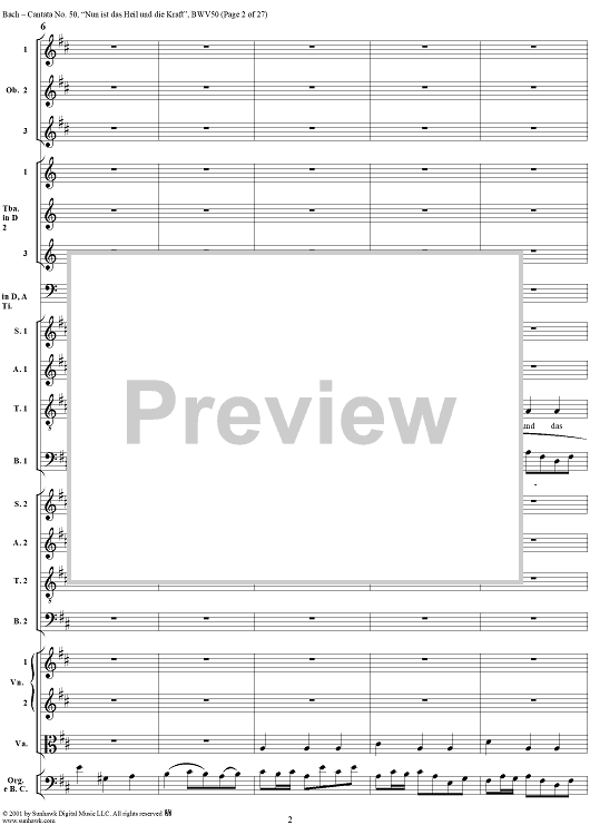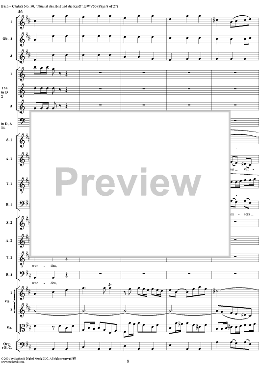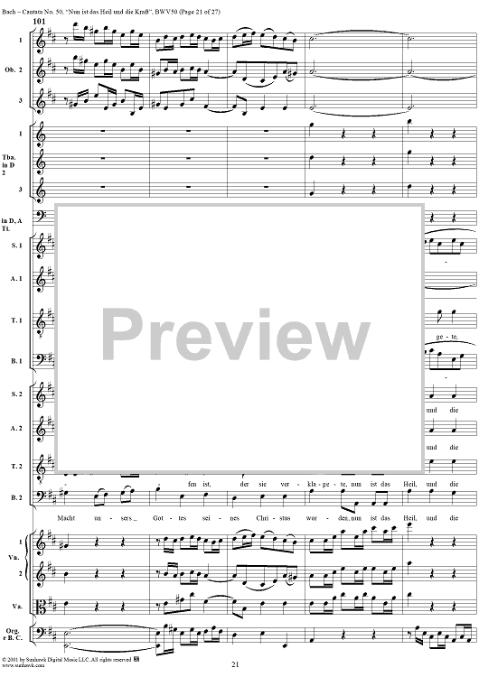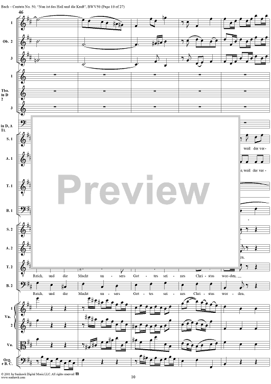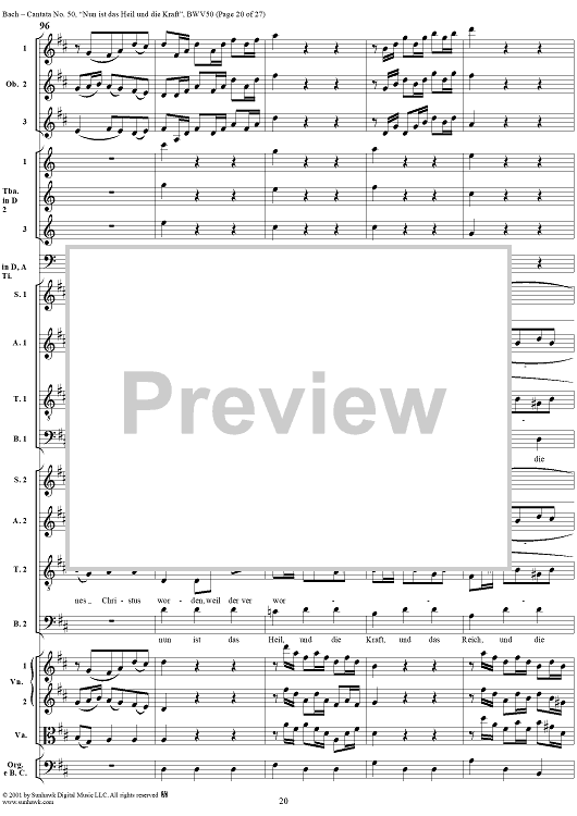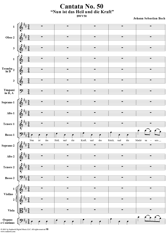 Digital Sheet Music for Cantata No. 50: Nun ist das Heil und die Kraft, BWV50 by Johann Sebastian Bach scored for Full Score; id:265756