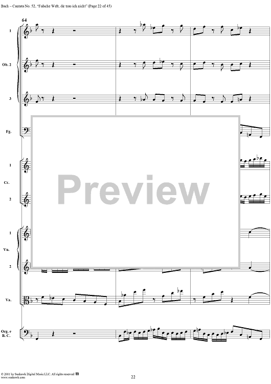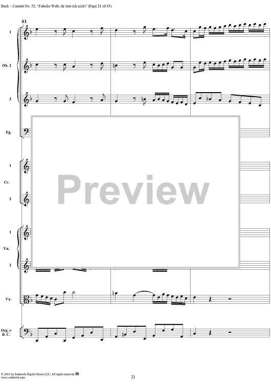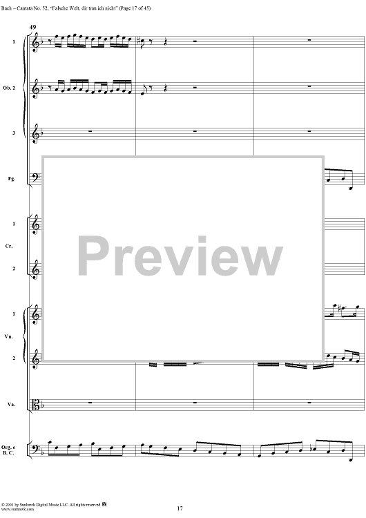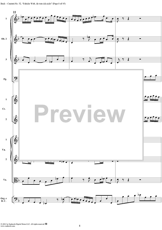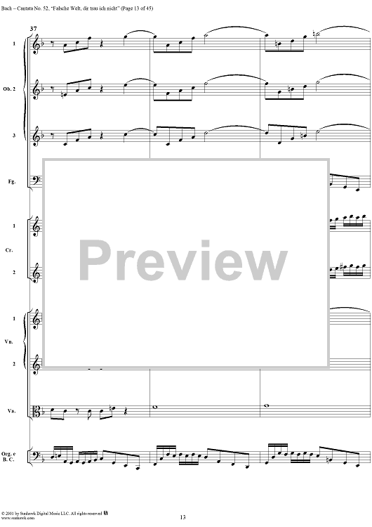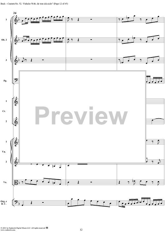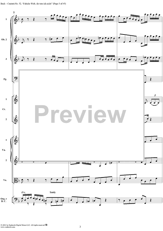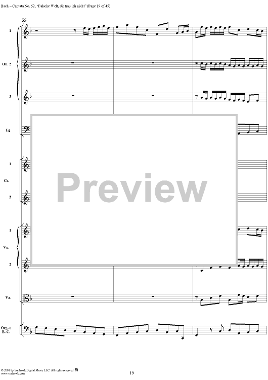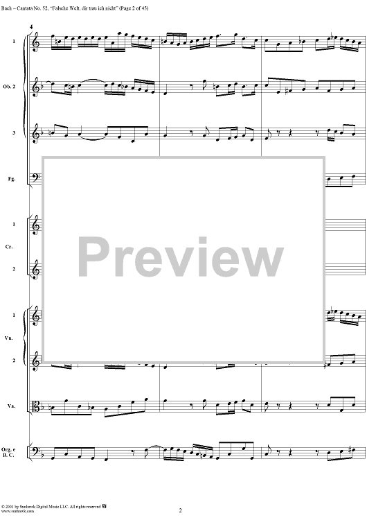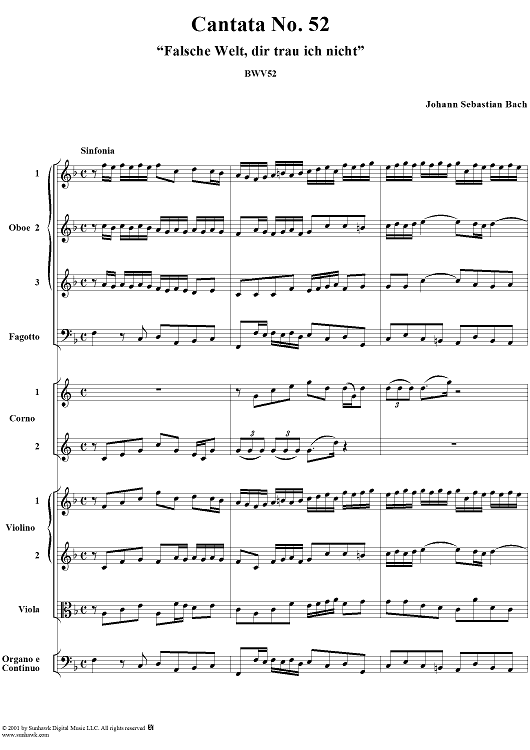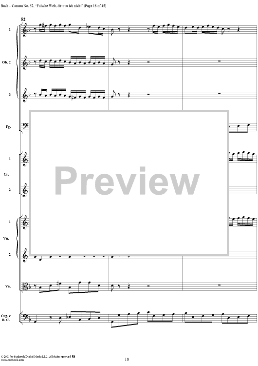 Digital Sheet Music for Cantata No. 52: Falsche Welt, dir trau ich nicht, BWV52 by Johann Sebastian Bach scored for Full Score; id:263242