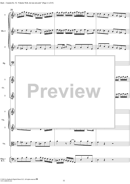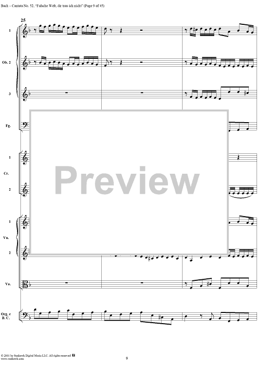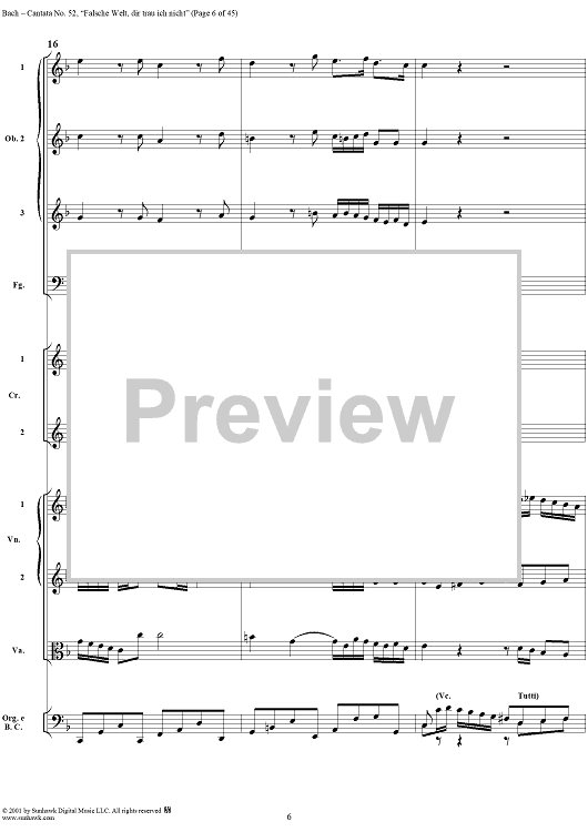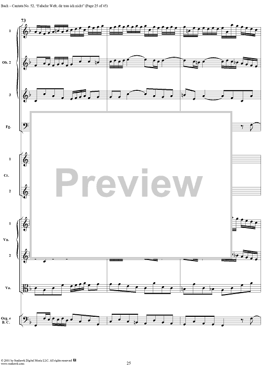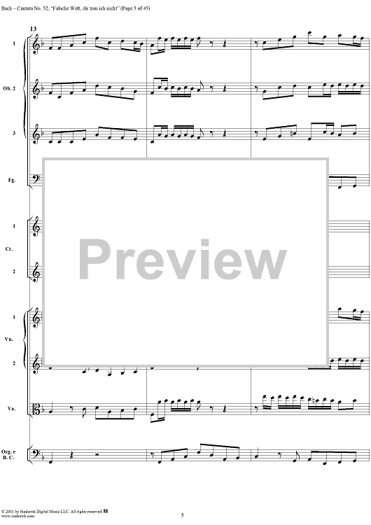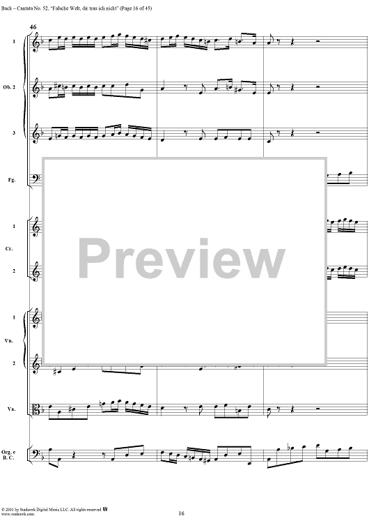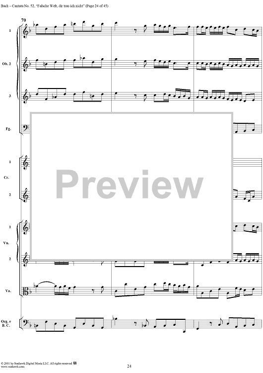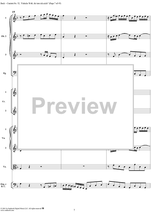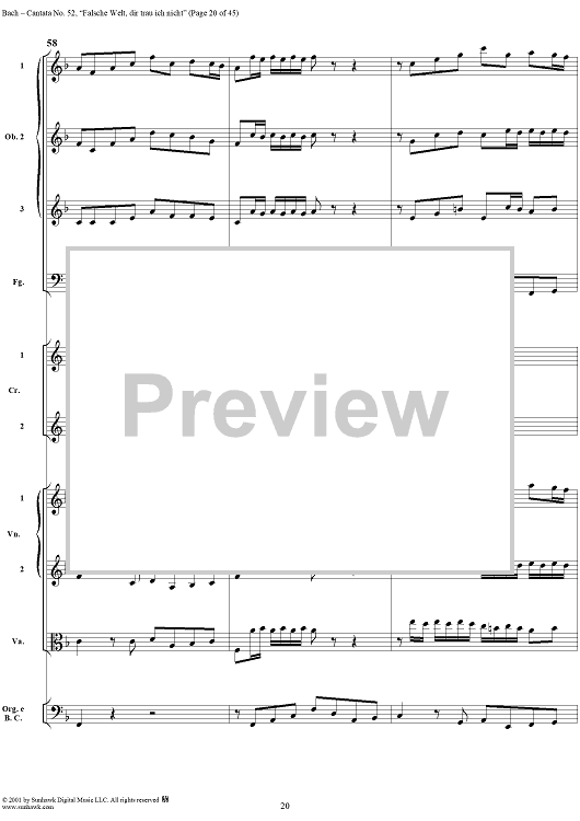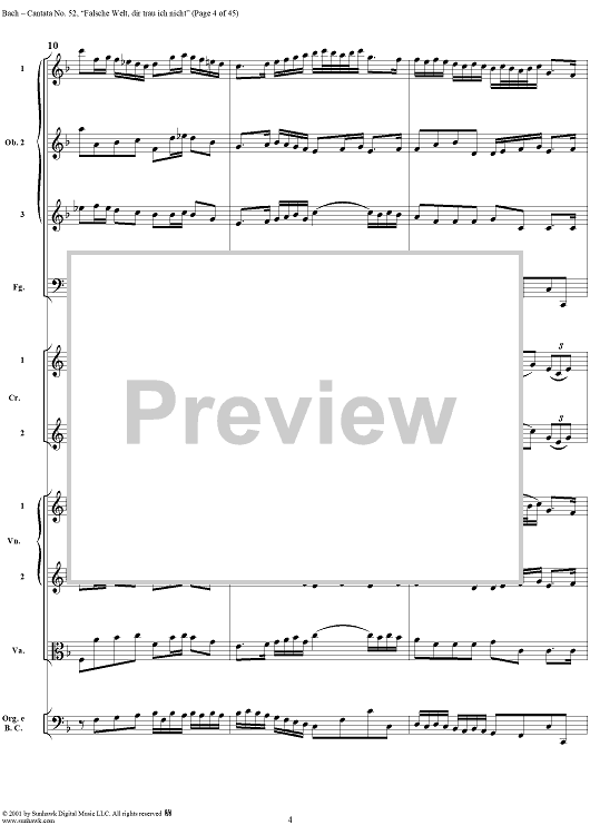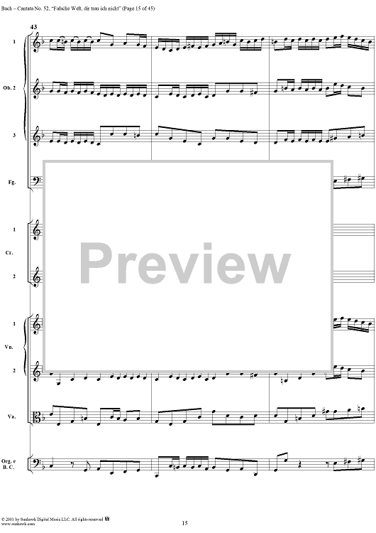 Digital Sheet Music for Cantata No. 52: Falsche Welt, dir trau ich nicht, BWV52 by Johann Sebastian Bach scored for Full Score; id:263242