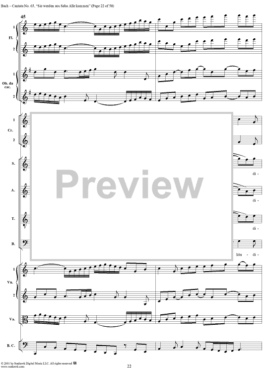 Digital Sheet Music for Cantata No. 65: Sie werden aus Saba alle kommen, BWV65 by Johann Sebastian Bach scored for Full Score; id:263057