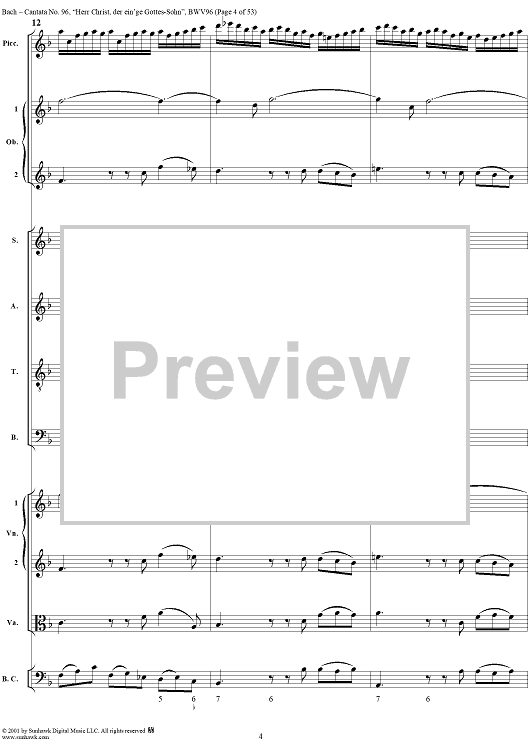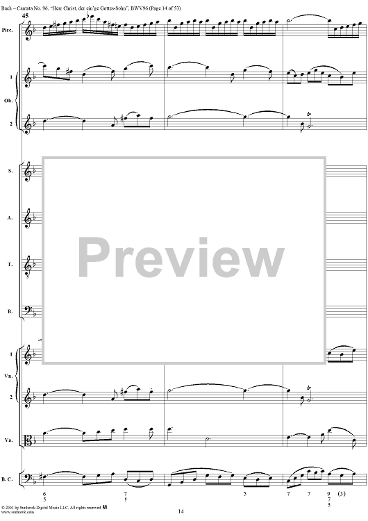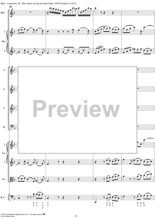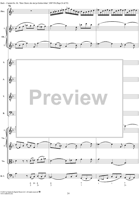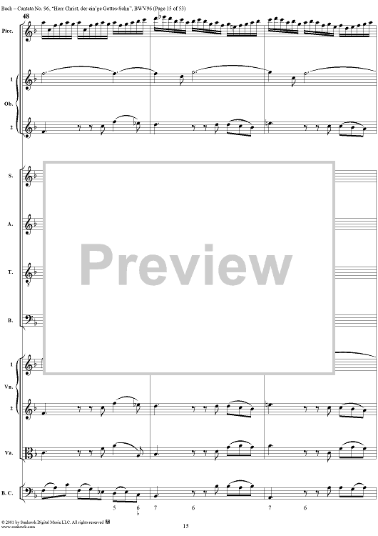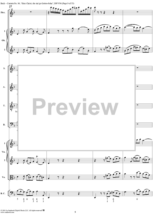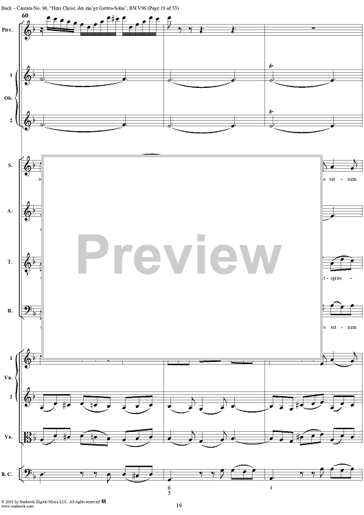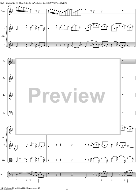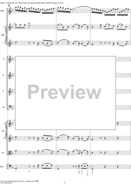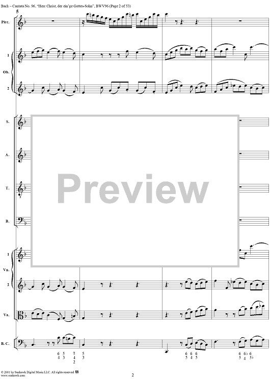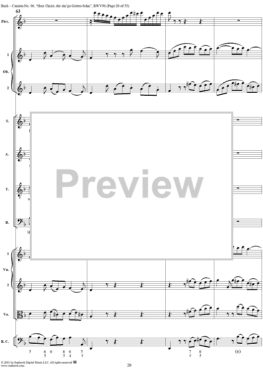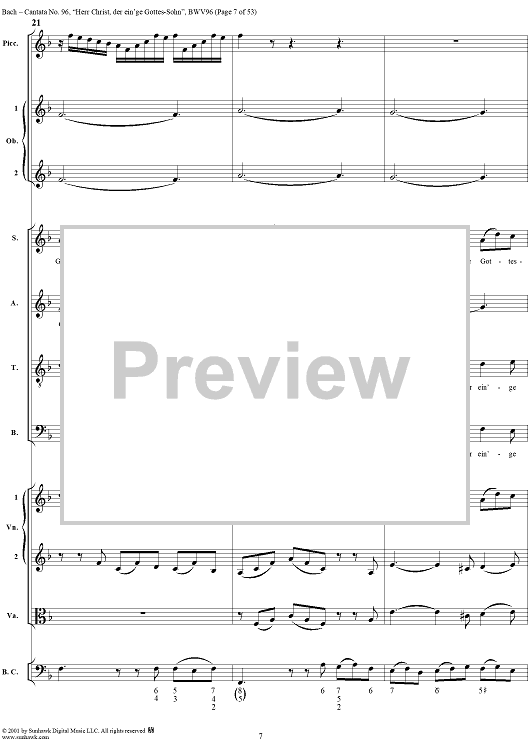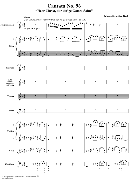 Digital Sheet Music for Cantata No. 96: Herr Christ, der ein'ge Gottes-Sohn, BWV96 by Johann Sebastian Bach scored for Full Score; id:269656