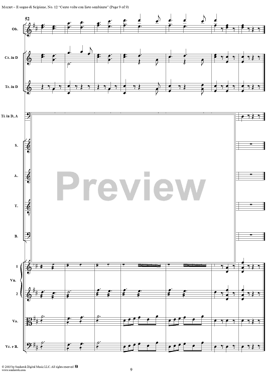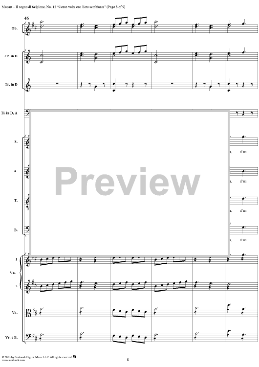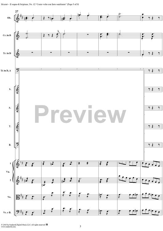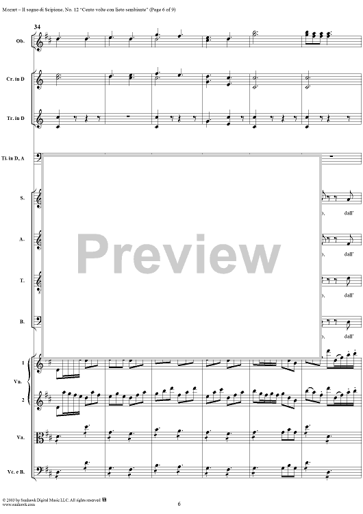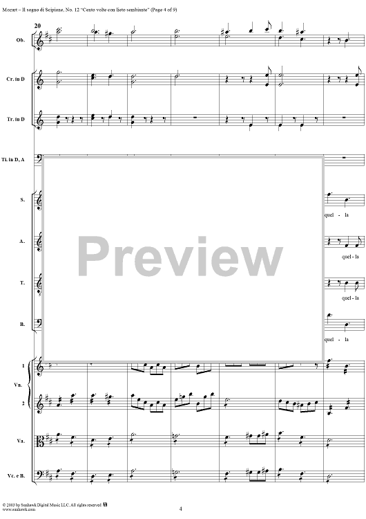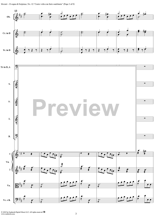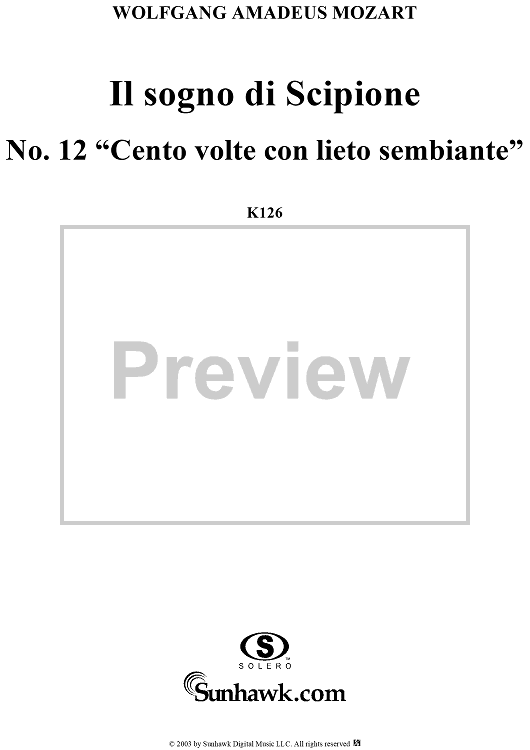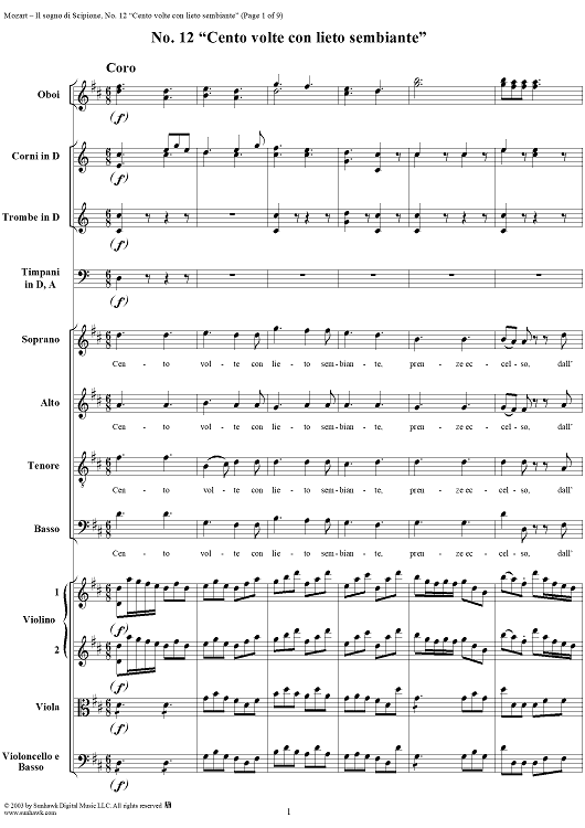 Digital Sheet Music for Cento volte con lieto sembiante (Chorus), No. 12 from "Il Sogno di Scipione" - Full Score by Wolfgang Amadeus Mozart scored for Soli/SATB/Orchestra; id:291194