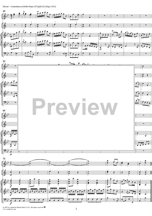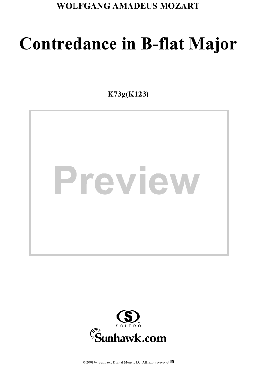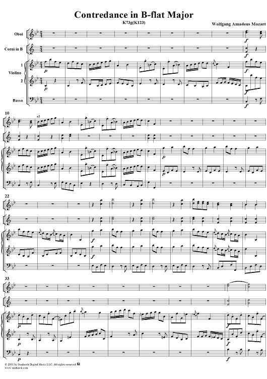Digital Sheet Music for Contredance in B-flat Major, K73g (K123) by Wolfgang Amadeus Mozart scored for Orchestra; id:266197