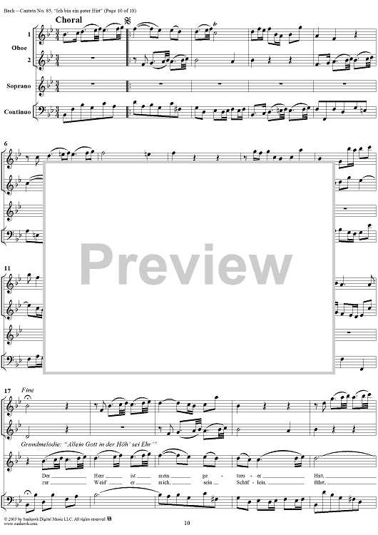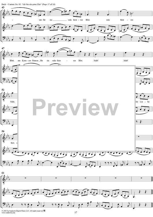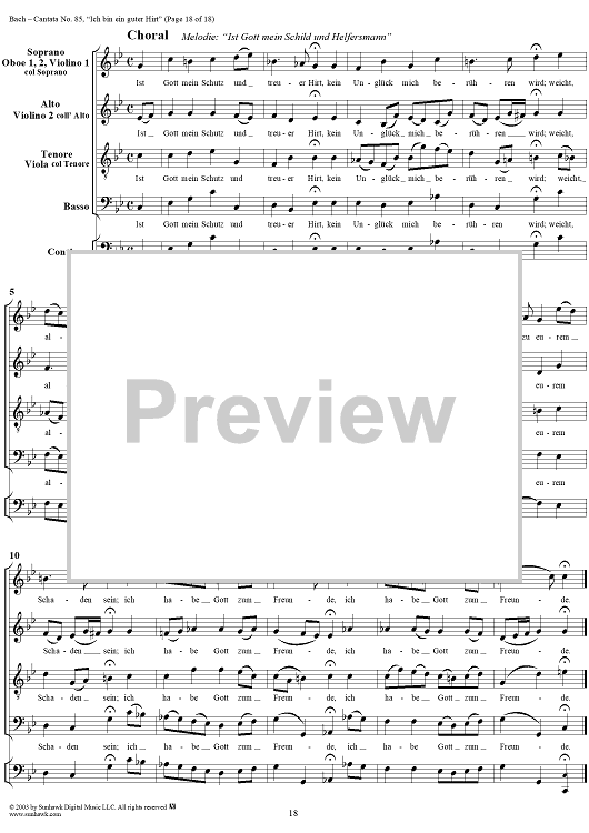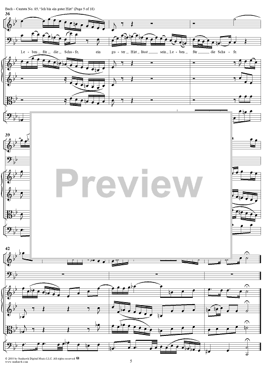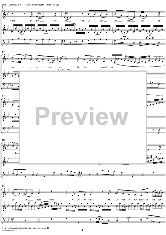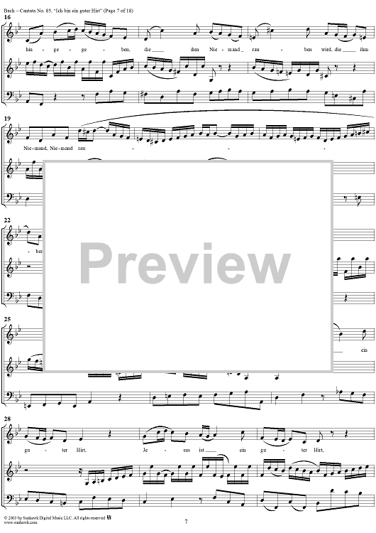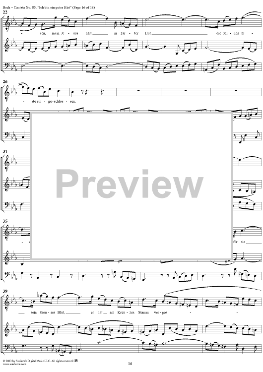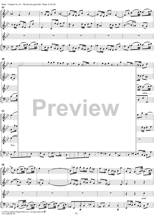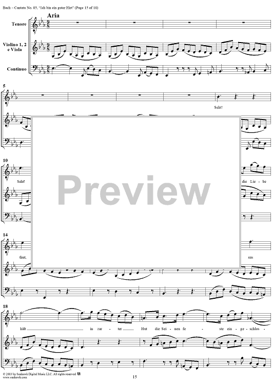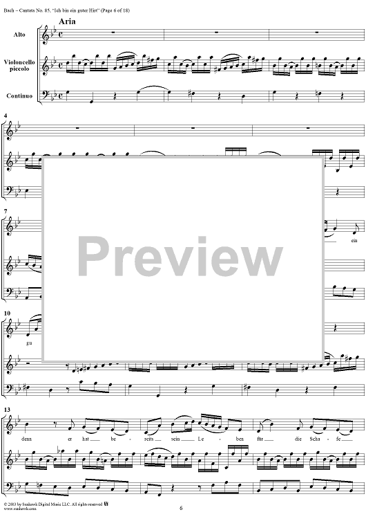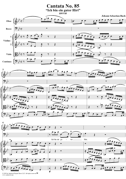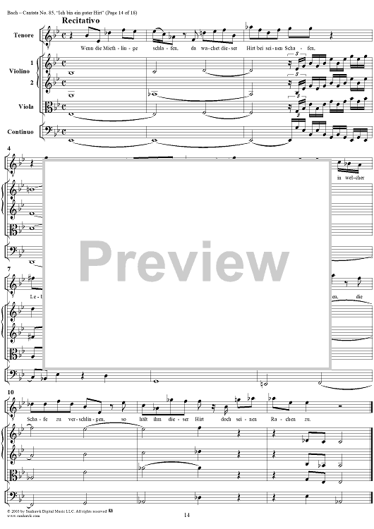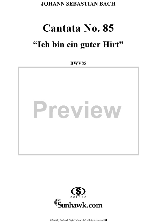 Digital Sheet Music for "Ich bin ein guter Hirt" from Cantata No. 85, BWV85 by Johann Sebastian Bach scored for Full Score; id:265676