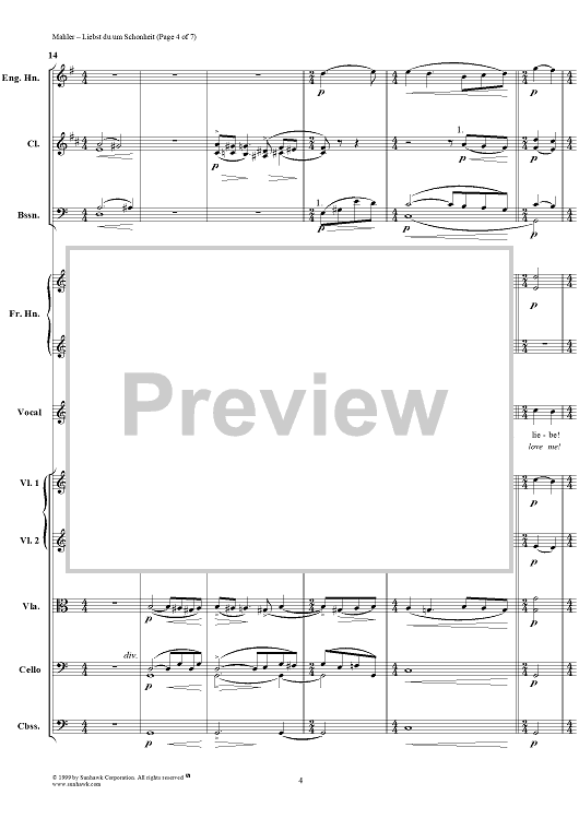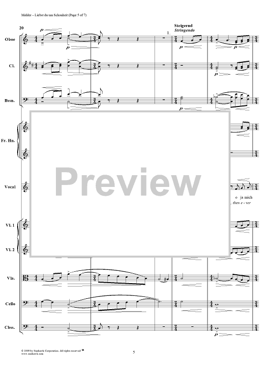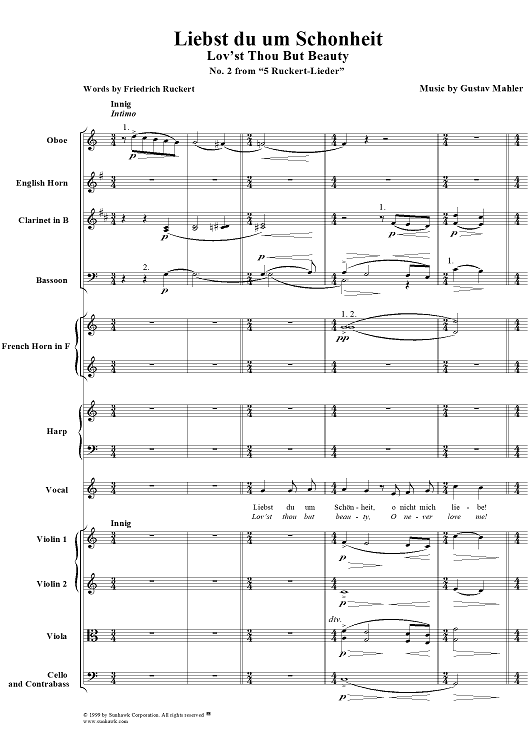 Digital Sheet Music for Liebst du um Schönheit - No. 2 from "5 Rückert-Lieder" by Gustav Mahler, Friedrich Rückert scored for Voice/Chamber Orchestra; id:252232
