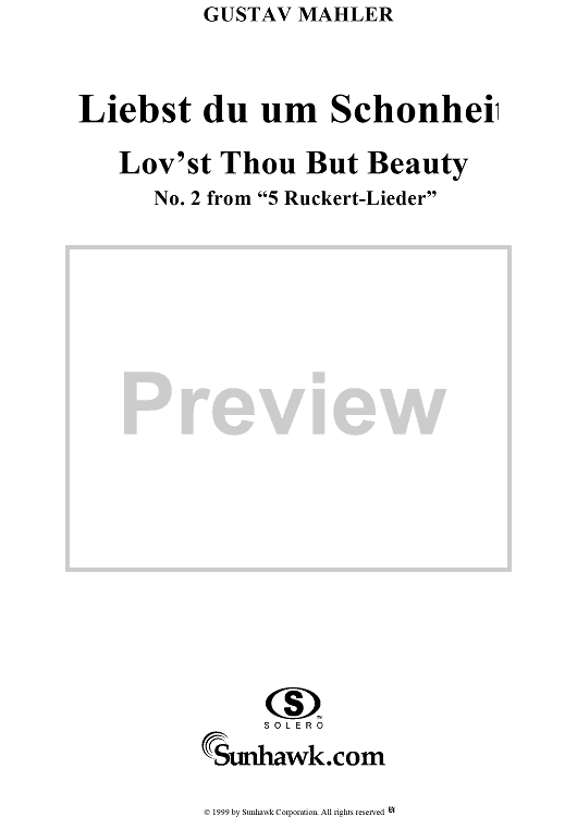 "Liebst du um Schönheit - No. 2 from "5 Rückert-Lieder"" Sheet Music by Gustav Mahler