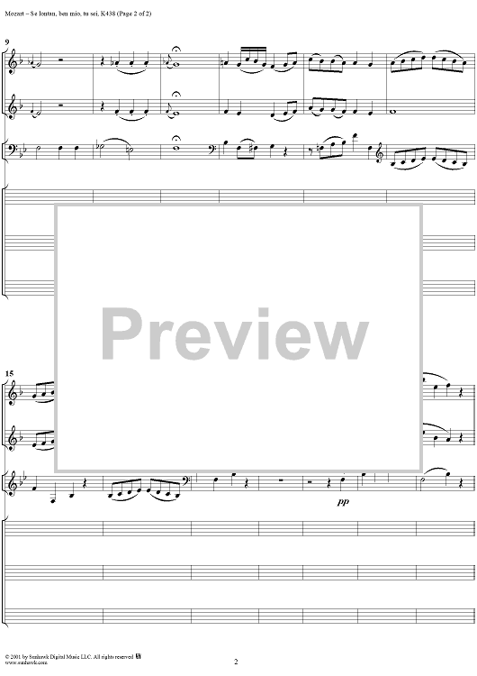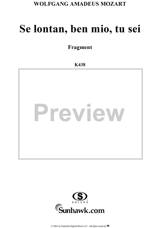 Digital Sheet Music for Notturno for Two Soprano, Bass and Orchestra: "Se lontan, ben mio, tu sei", K. 438 - Full Score by Wolfgang Amadeus Mozart scored for Two Sopranos/Bass/Orchestra; id:242032