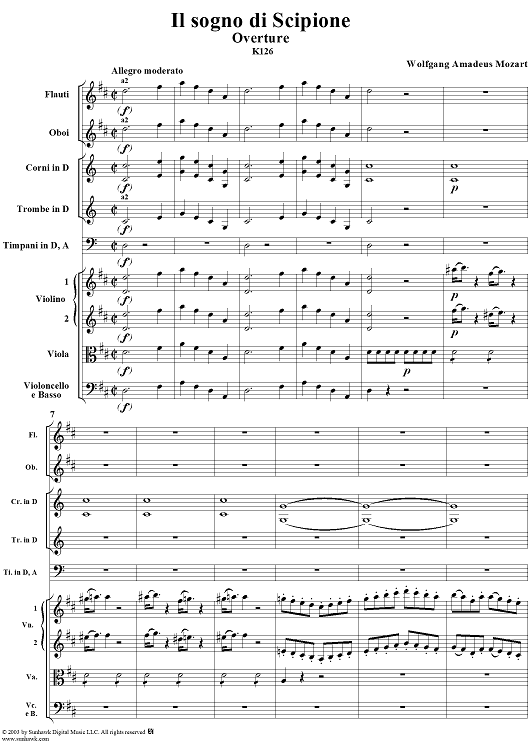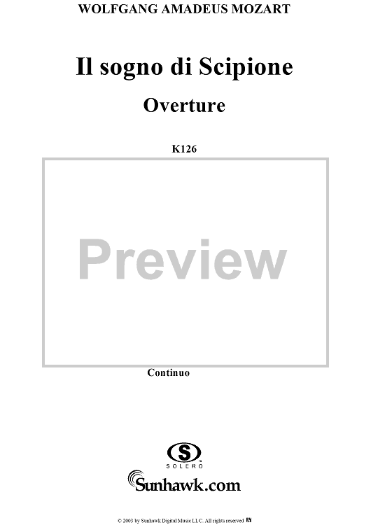 Digital Sheet Music for Overture from "Il Sogno di Scipione" - Full Score by Wolfgang Amadeus Mozart scored for Orchestra; id:277627