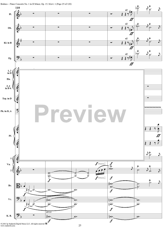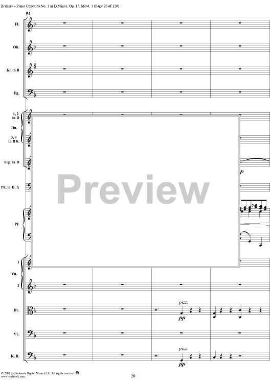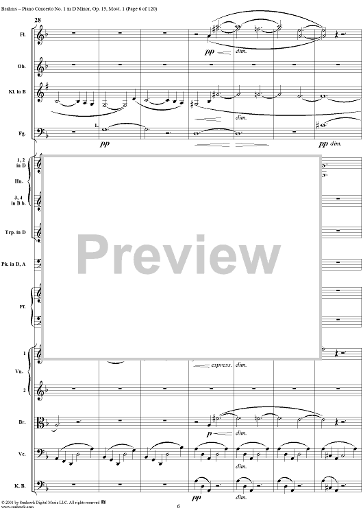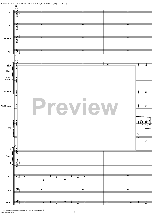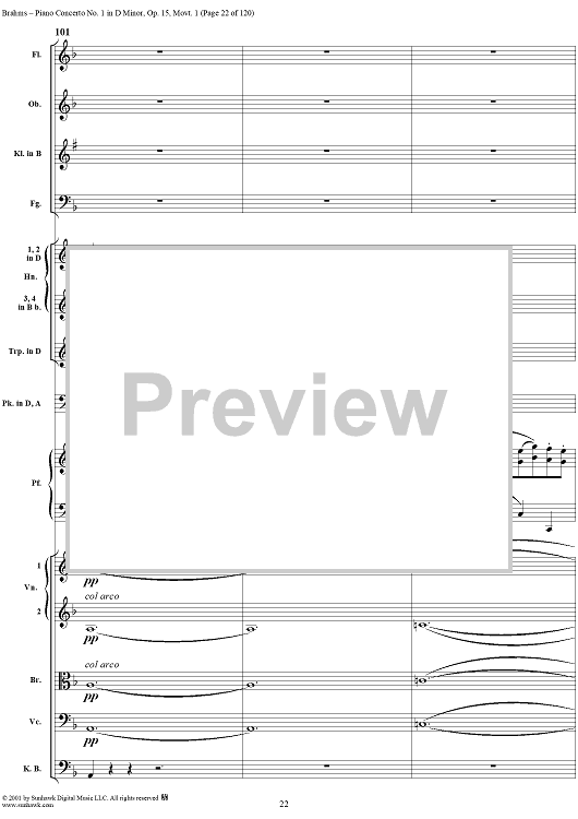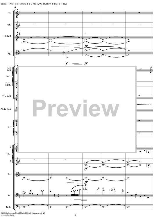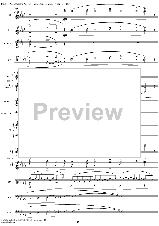 Digital Sheet Music for Piano Concerto no. 1 in D minor, Op.15, Maestoso by Johannes Brahms scored for Full Score; id:274773