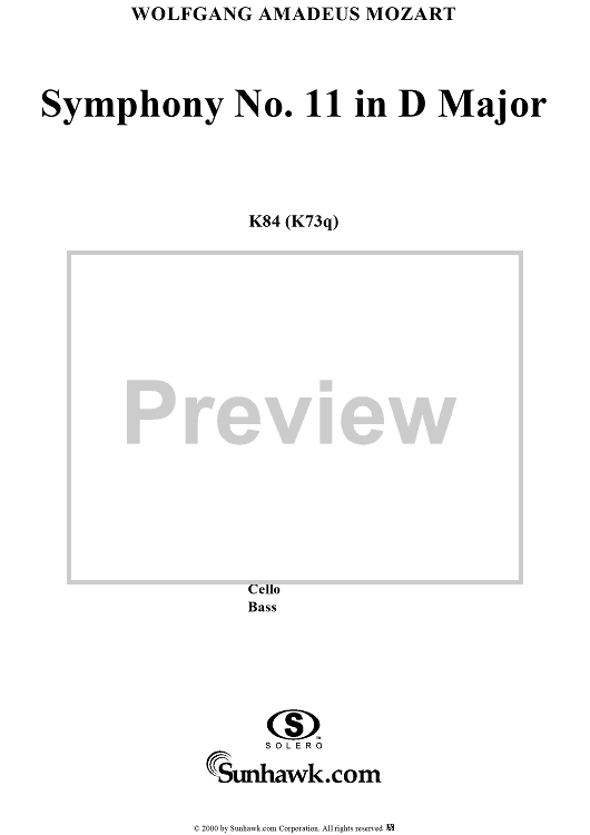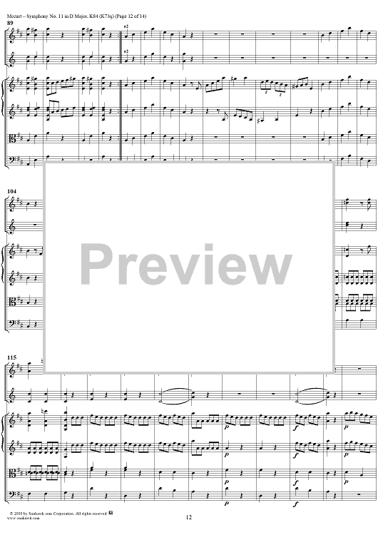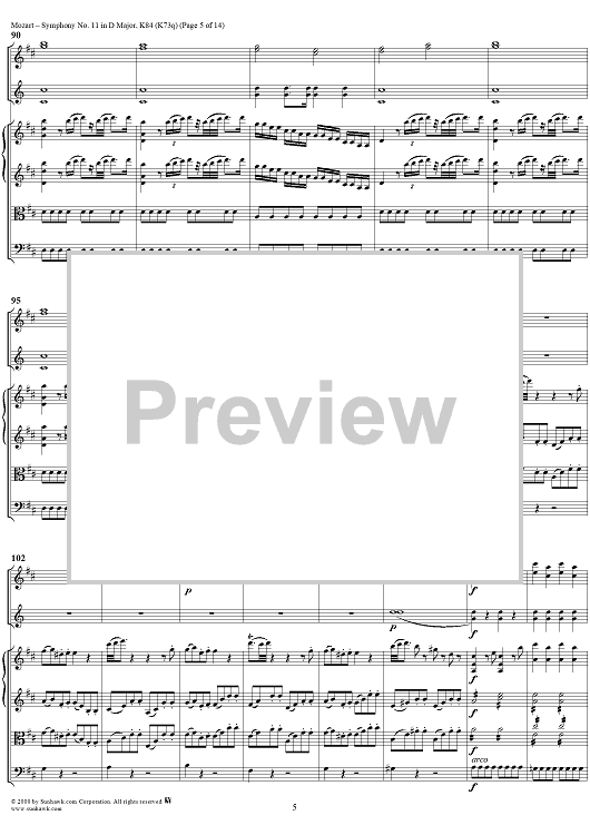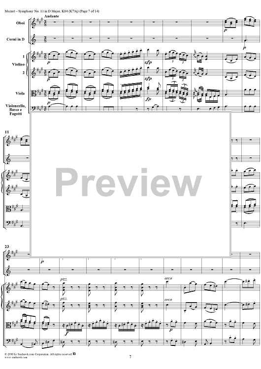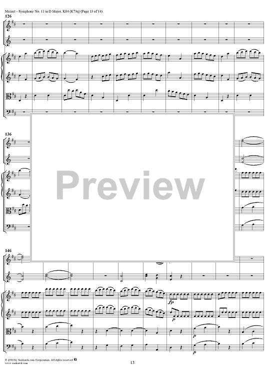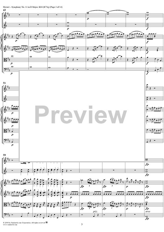 Digital Sheet Music for Symphony No. 11 in D Major, K84 - Full Score by Wolfgang Amadeus Mozart scored for Orchestra; id:235634