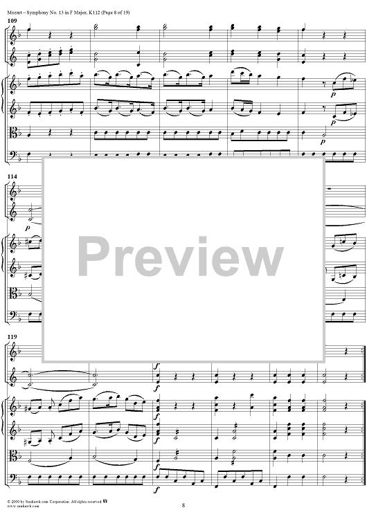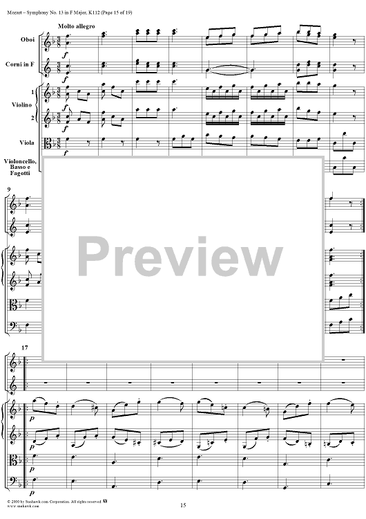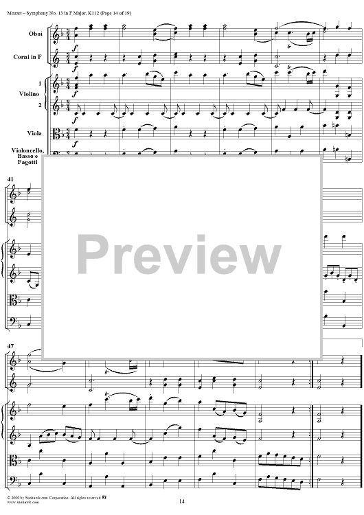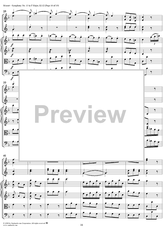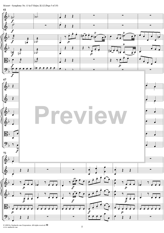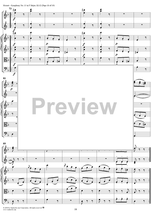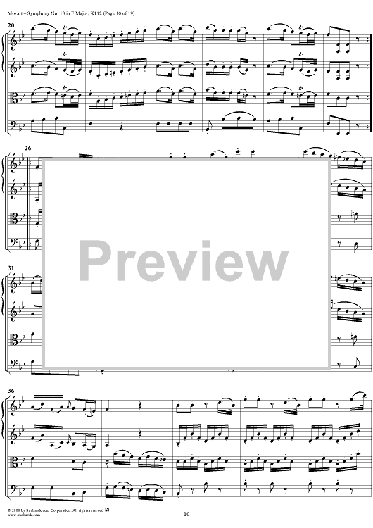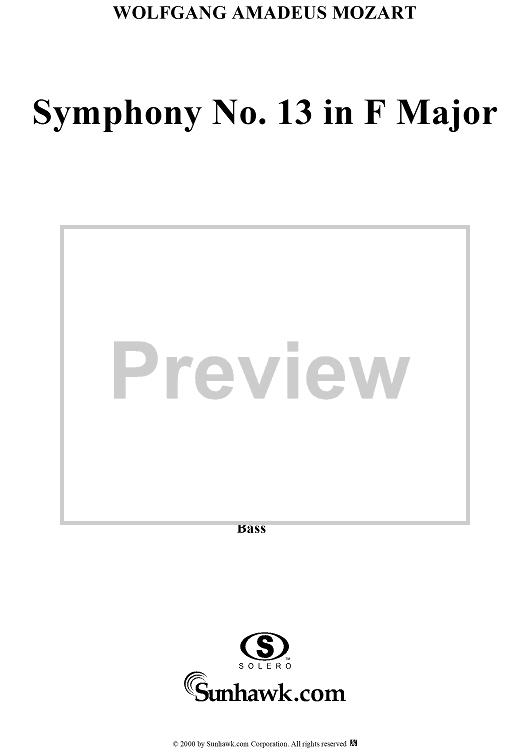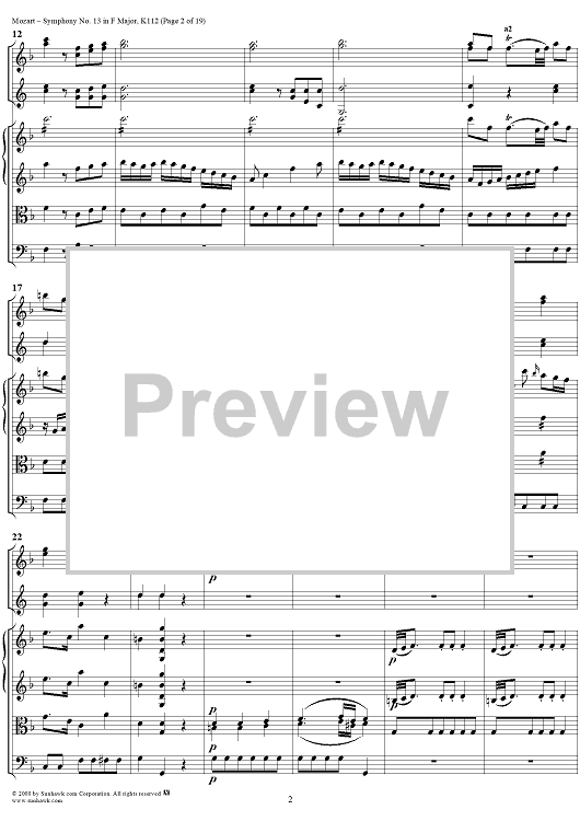 Digital Sheet Music for Symphony No. 13 in F Major, K112 - Full Score by Wolfgang Amadeus Mozart scored for Orchestra; id:236499