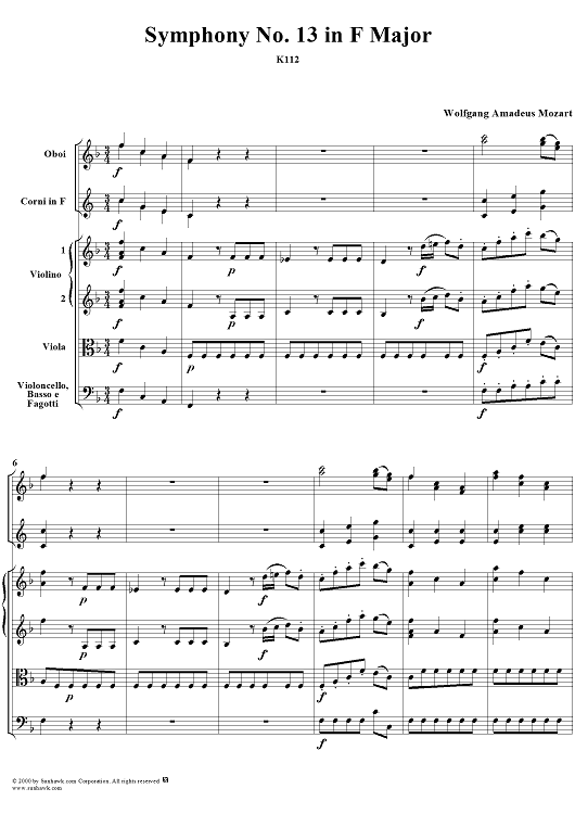 "Symphony No. 13 in F Major, K112 - Full Score" Sheet Music by Wolfgang Amadeus Mozart