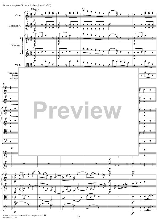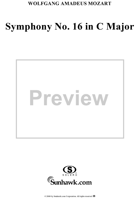 Digital Sheet Music for Symphony No. 16 in C Major, K128 - Full Score by Wolfgang Amadeus Mozart scored for Orchestra; id:220769