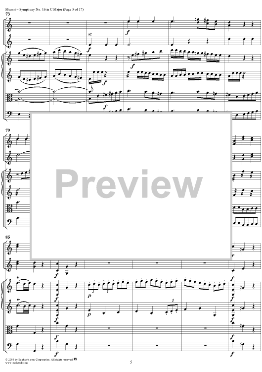 "Symphony No. 16 in C Major, K128 - Full Score" Sheet Music by Wolfgang Amadeus Mozart