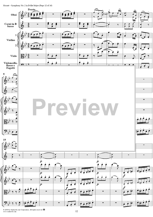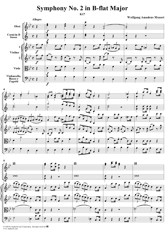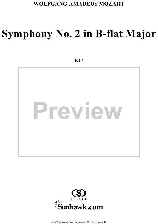 Digital Sheet Music for Symphony No. 2 in B-flat Major, K17 - Full Score by Wolfgang Amadeus Mozart scored for Orchestra; id:241211