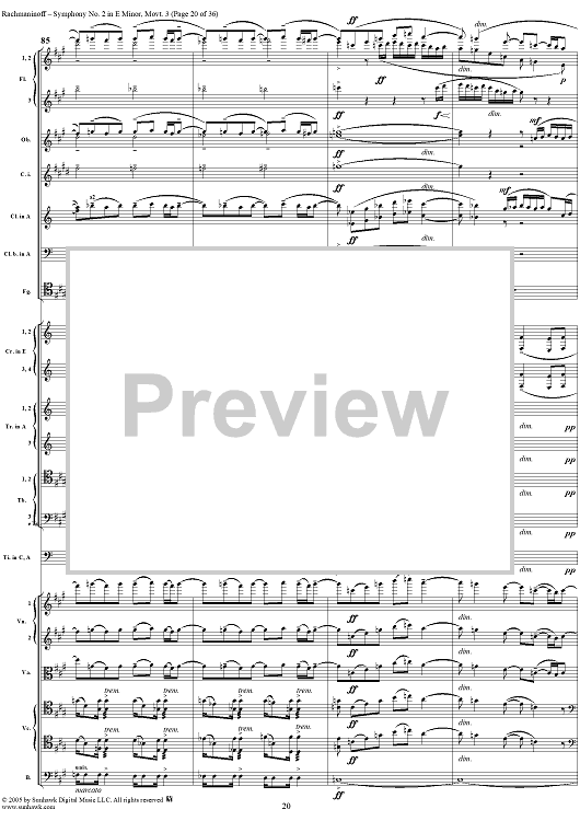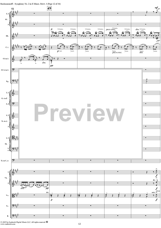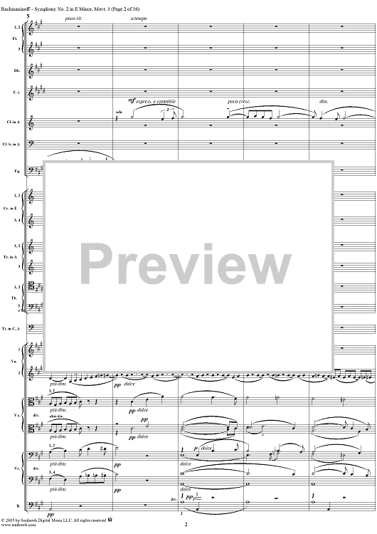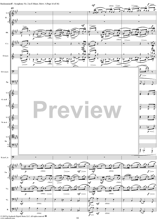 Digital Sheet Music for Symphony No. 2, Movement 3 by Sergei Rachmaninoff scored for Orchestra; id:311230