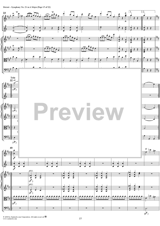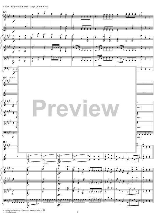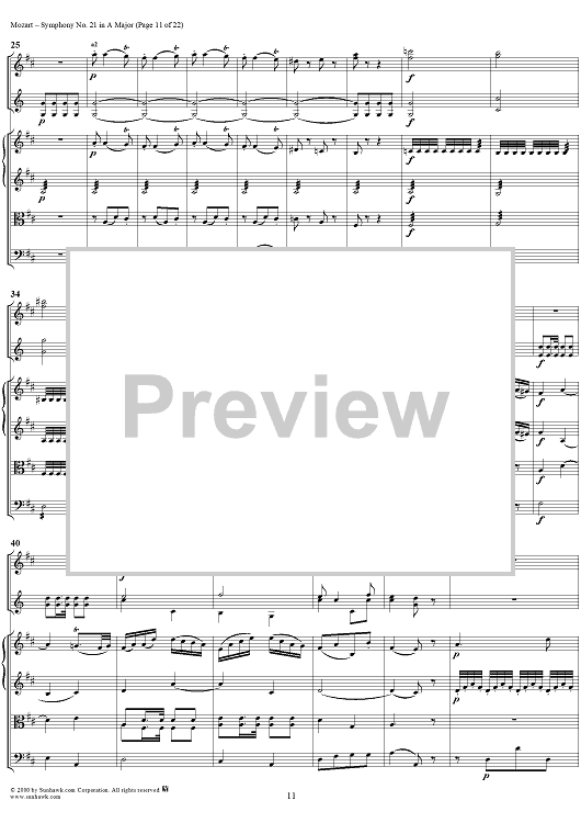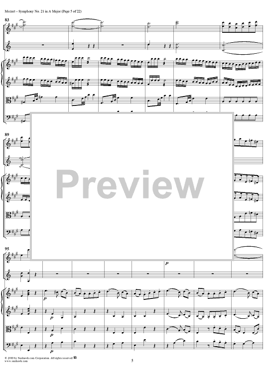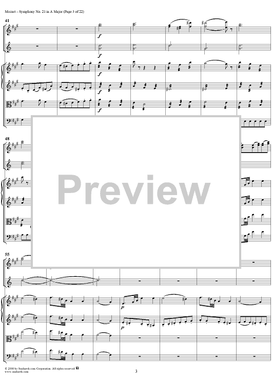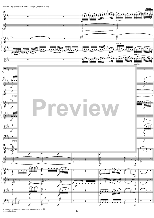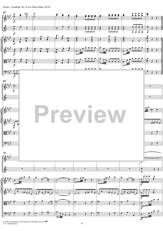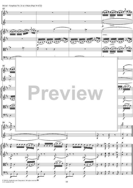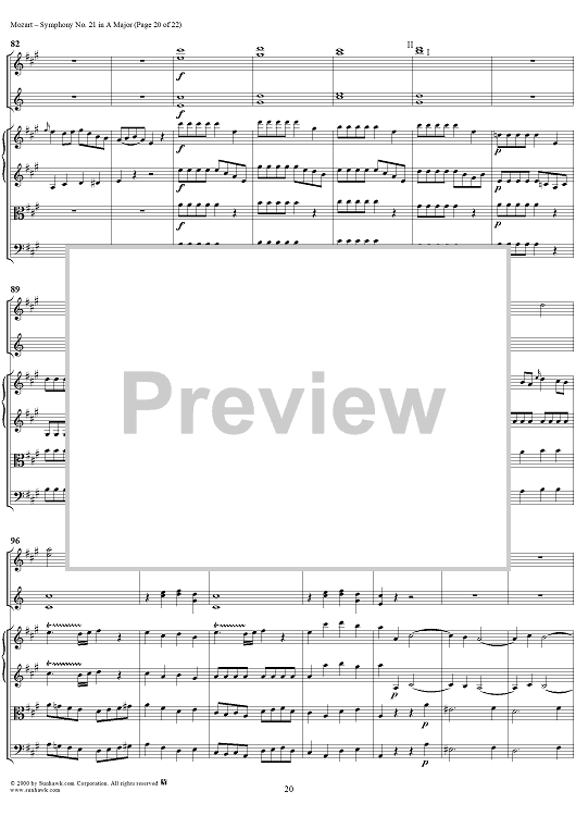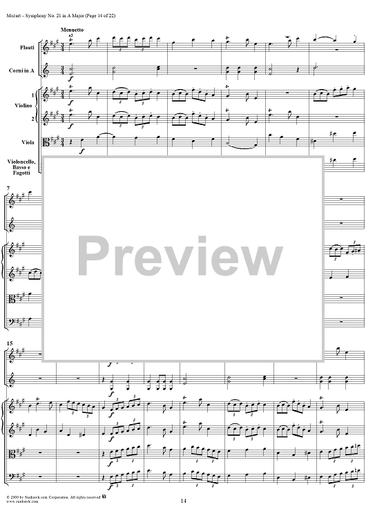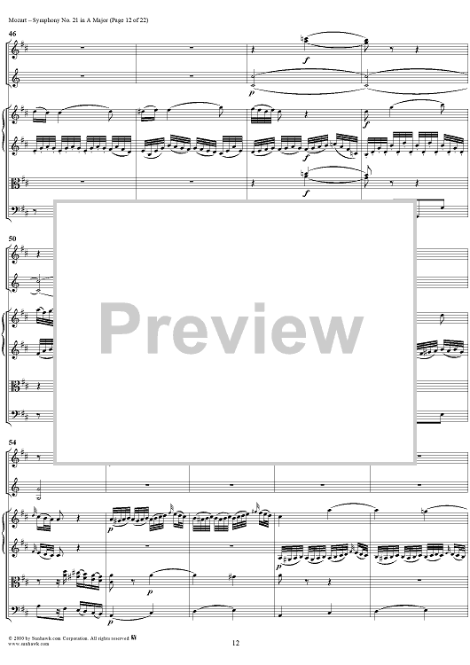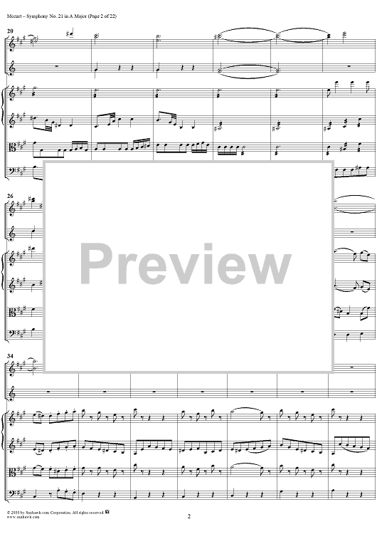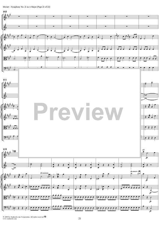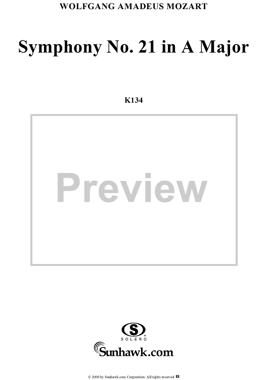 Digital Sheet Music for Symphony No. 21 in A Major, K134 - Full Score by Wolfgang Amadeus Mozart scored for Orchestra; id:252521