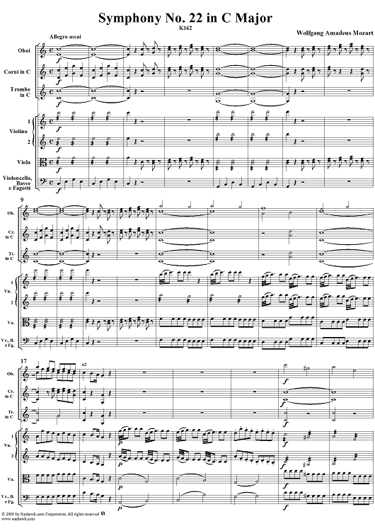 Digital Sheet Music for Symphony No. 22 in C Major, K162 - Full Score by Wolfgang Amadeus Mozart scored for Orchestra; id:241210