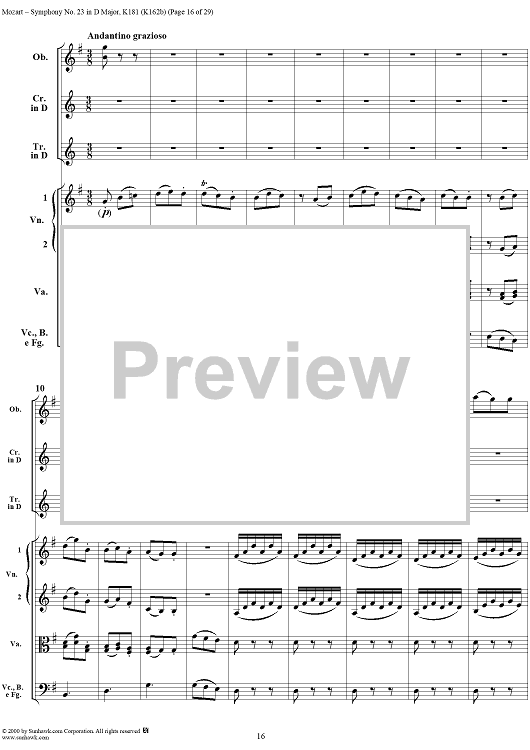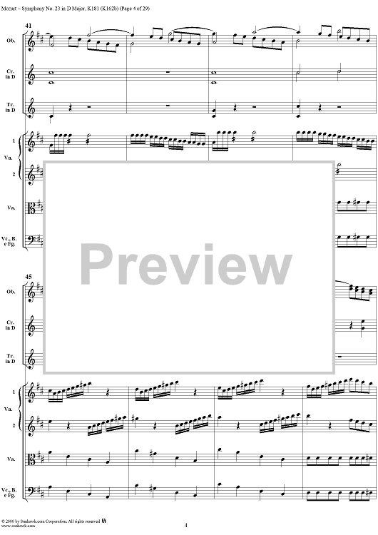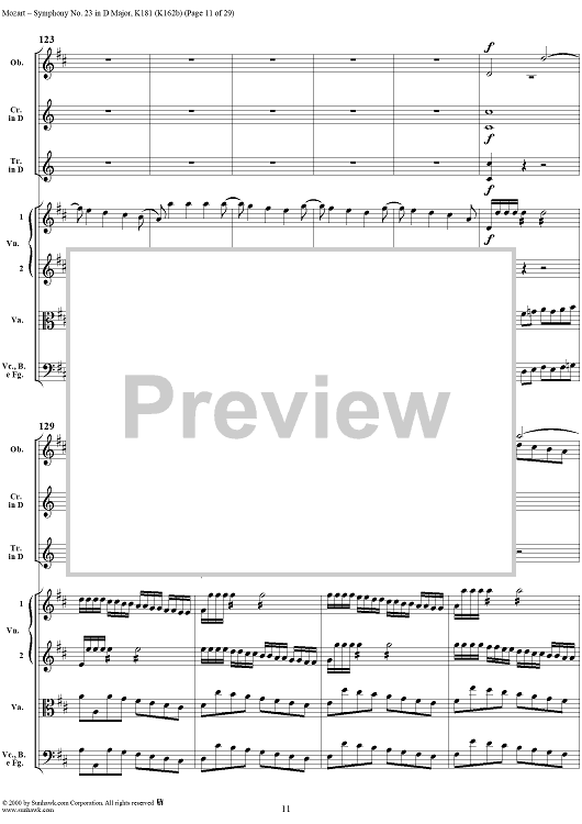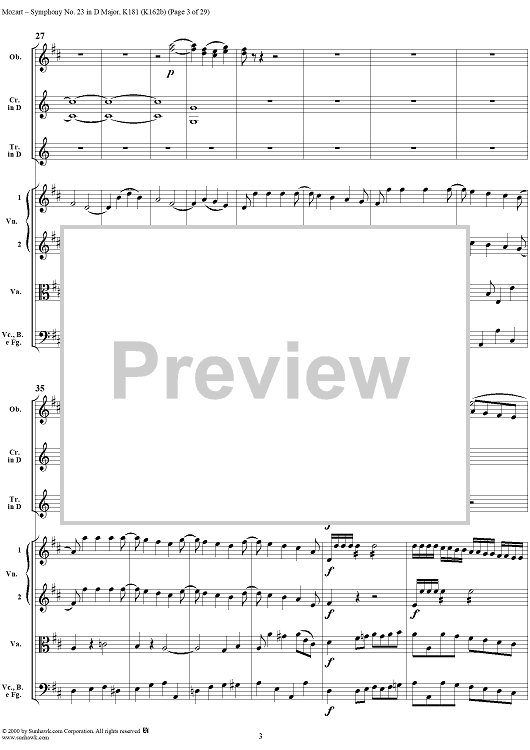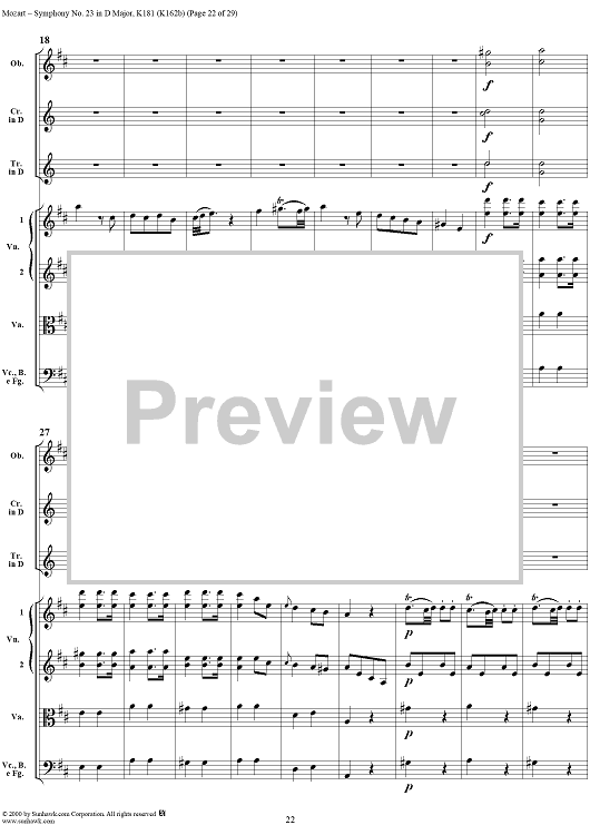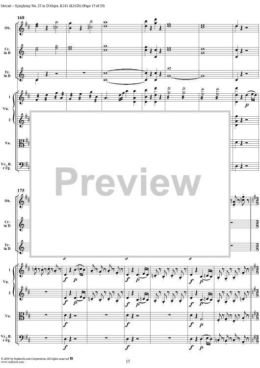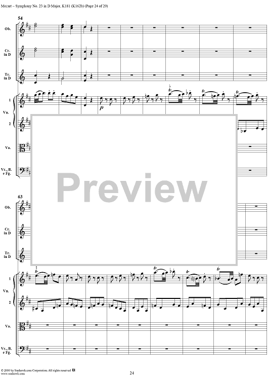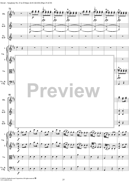 Digital Sheet Music for Symphony No. 23 in D Major, K181 - Full Score by Wolfgang Amadeus Mozart scored for Orchestra; id:233639