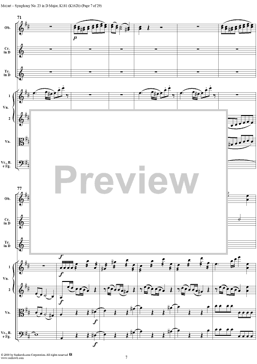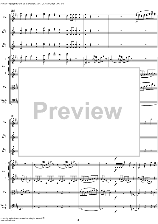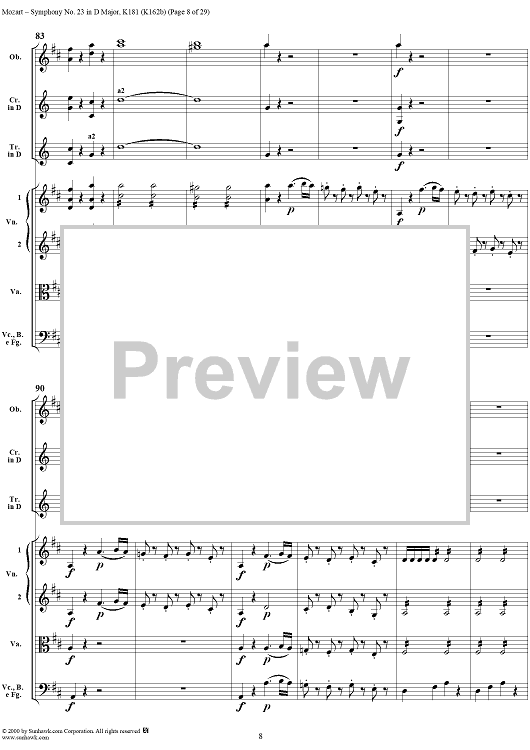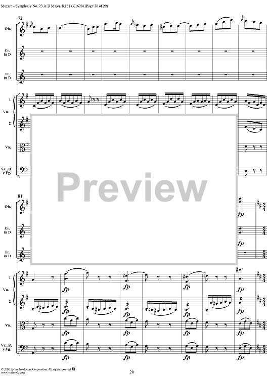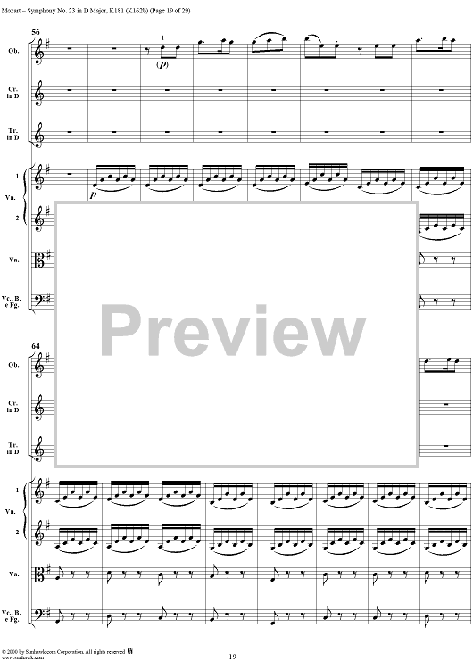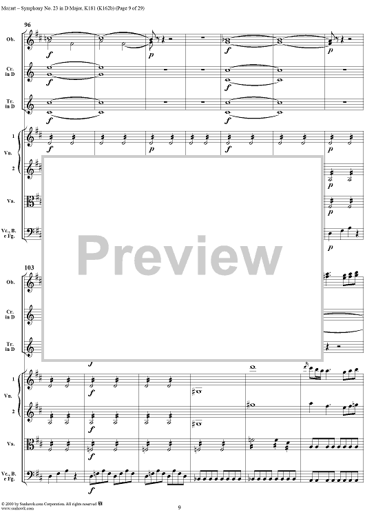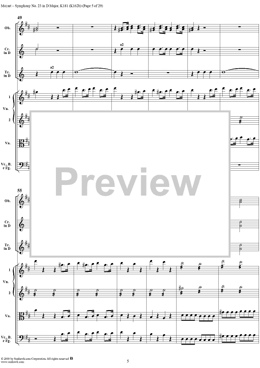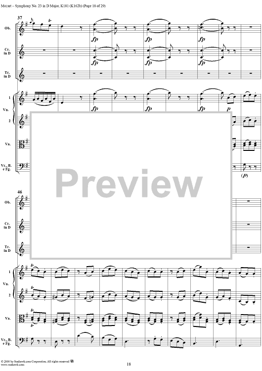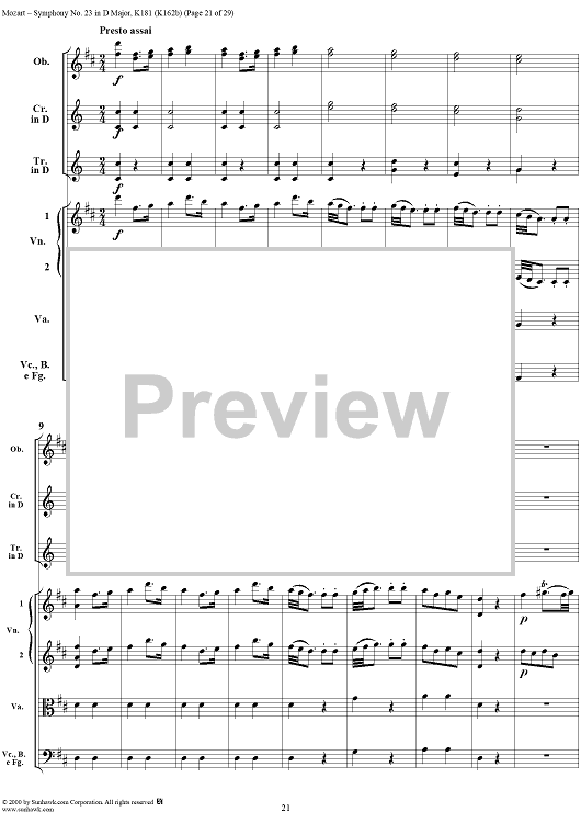 Digital Sheet Music for Symphony No. 23 in D Major, K181 - Full Score by Wolfgang Amadeus Mozart scored for Orchestra; id:233639