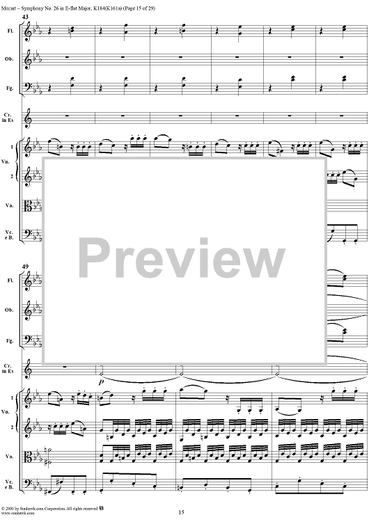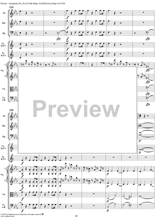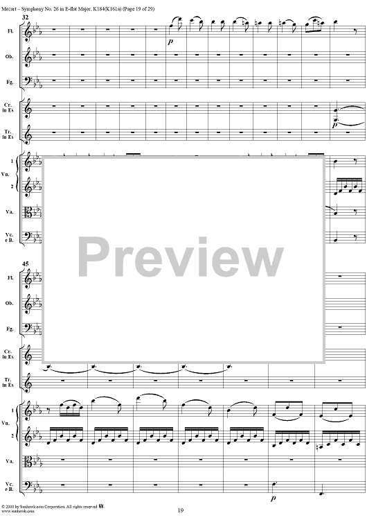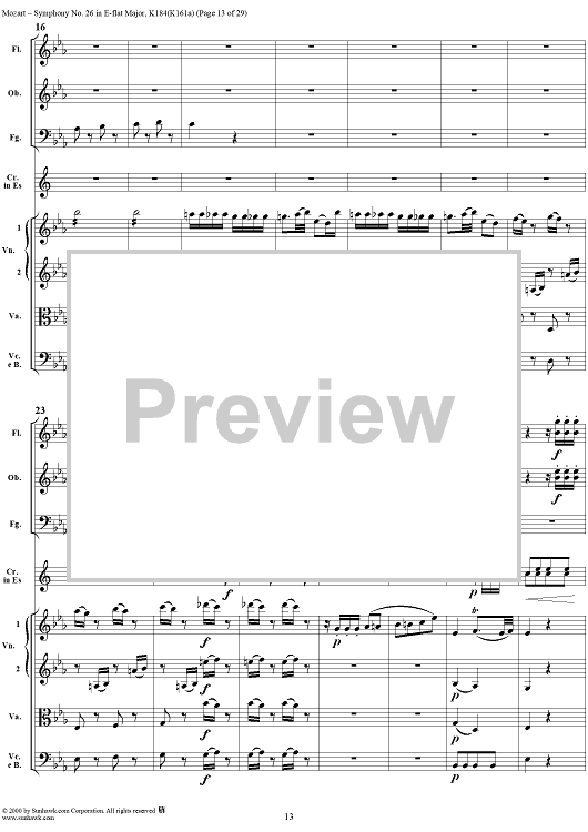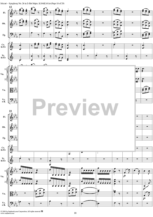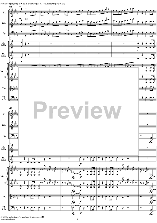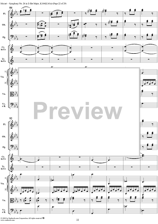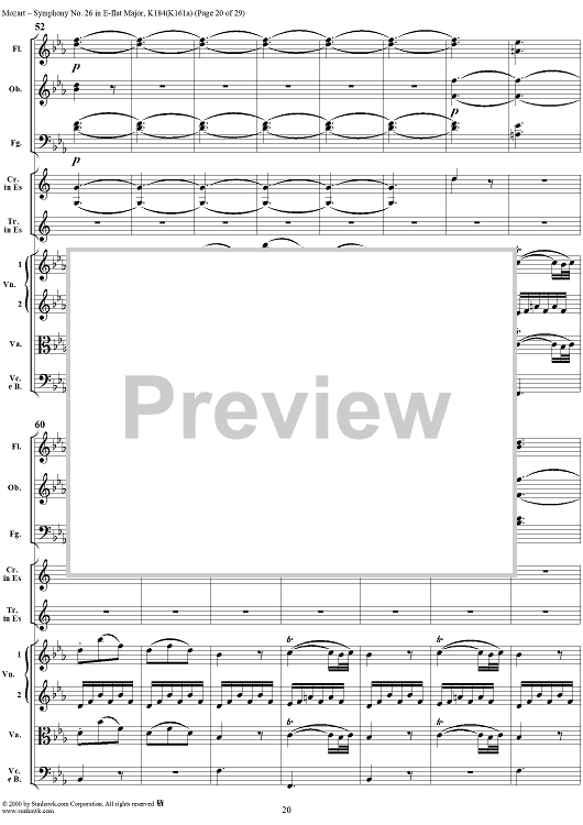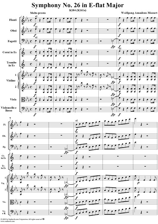 Digital Sheet Music for Symphony No. 26 in E-flat Major, K184 - Full Score by Wolfgang Amadeus Mozart scored for Orchestra; id:220771